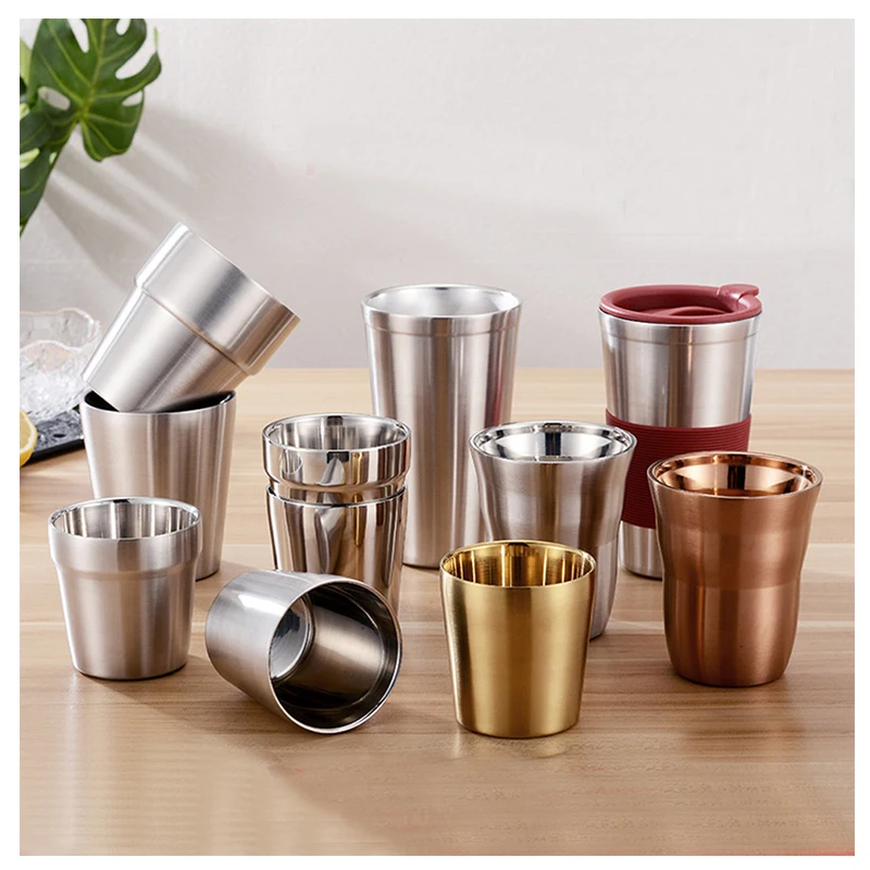 Стаканы из нержавеющей стали с двойными стенками, 175260300480 мл, металлические кружки, стакан, чашка для холодного быстрого кофе, кружка для бара Вечерние