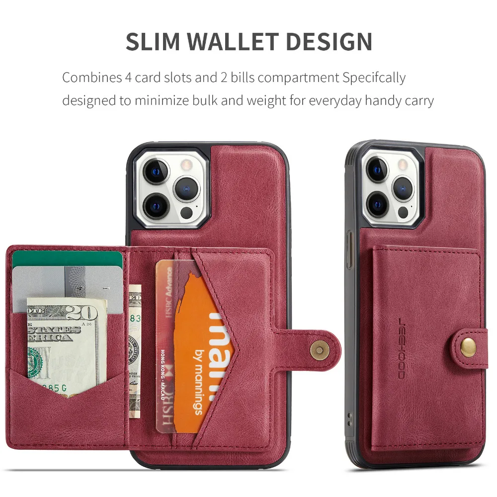 Магнитный держатель для карт 2 в 1, чехол для iPhone 11, 12, 13 Pro Max, 12, Mini, 7, 8 Plus, X, XR, XS, кожаный съемный чехол-накладка
