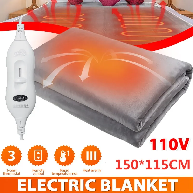 Электрическое одеяло 110 В220 В, серое Двухспальное одеяло с подогр...