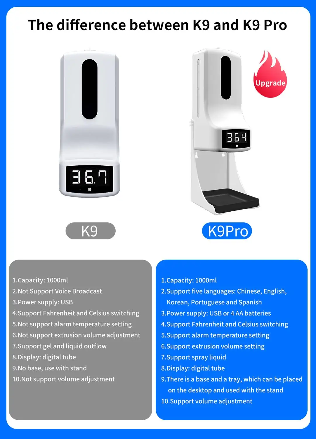 Model NumberK9 PRO Digital Non-contact Infrared Thermometer Soap Dispenser