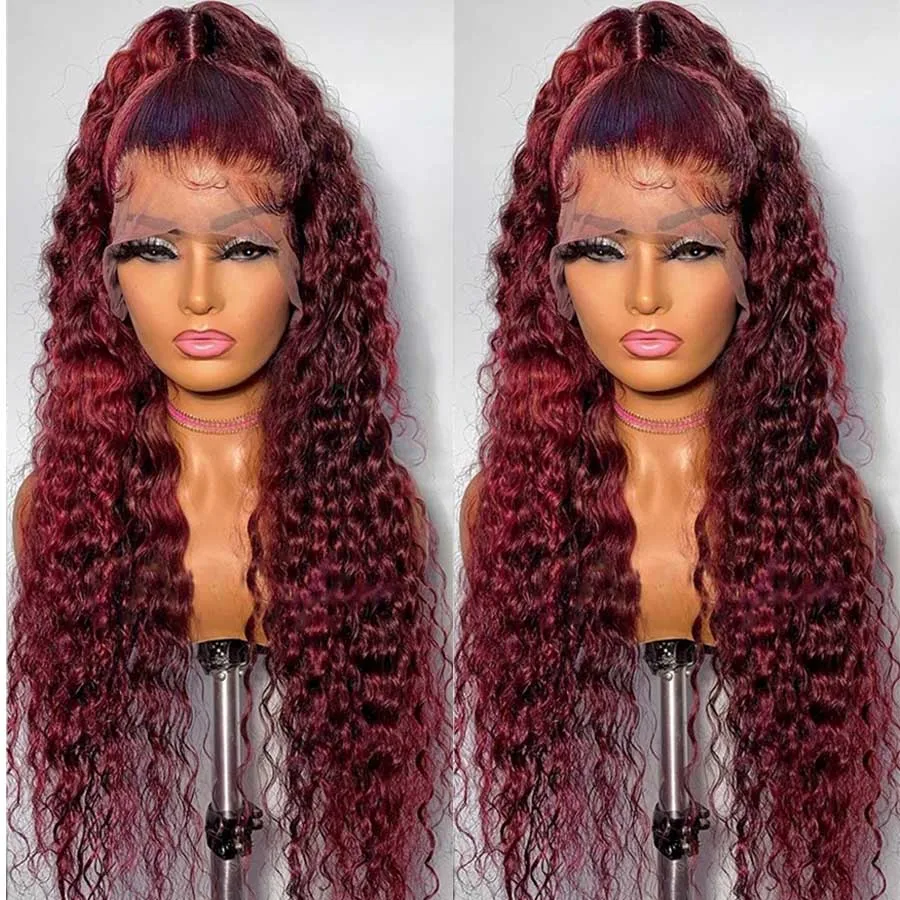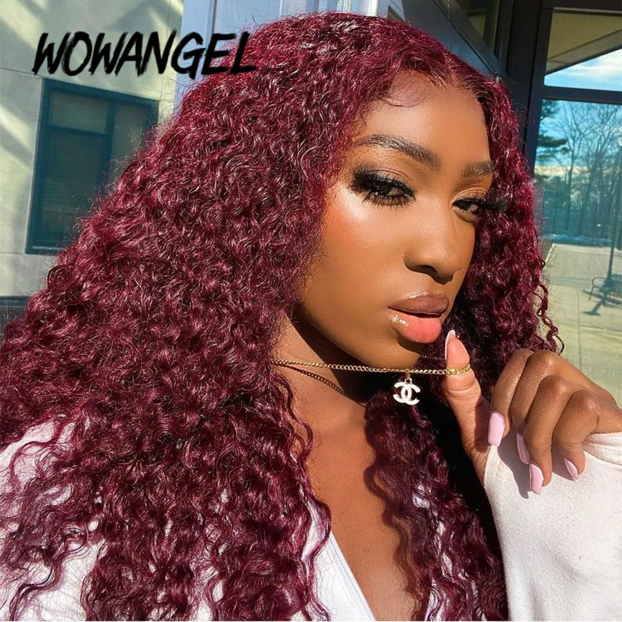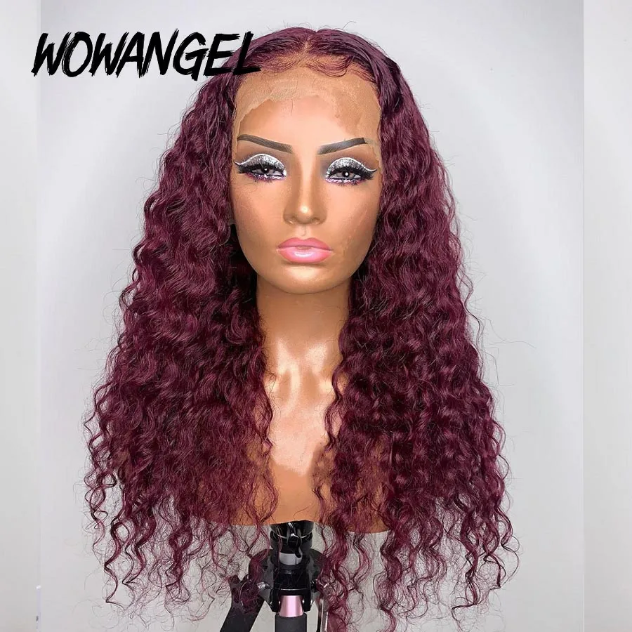 Парики из натуральных волос на кружевной фронтальной основе, 99J, вьющиеся волосы, 13*6 фронтальные парики, красные отбеленные узлы, бразильские, мягкие, полностью цветные, для черных женщин