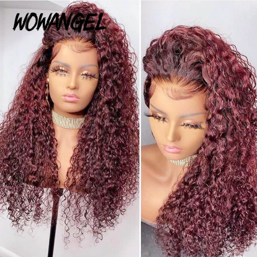 99J бордовый кружевной передний парик отбеленные узлы Remy бразильские кудрявые вьющиеся человеческие волосы парик 13X 6 цветные человеческие волосы парики для женщин