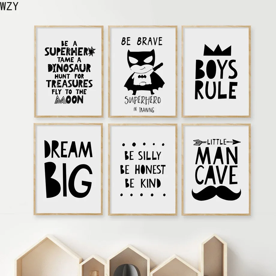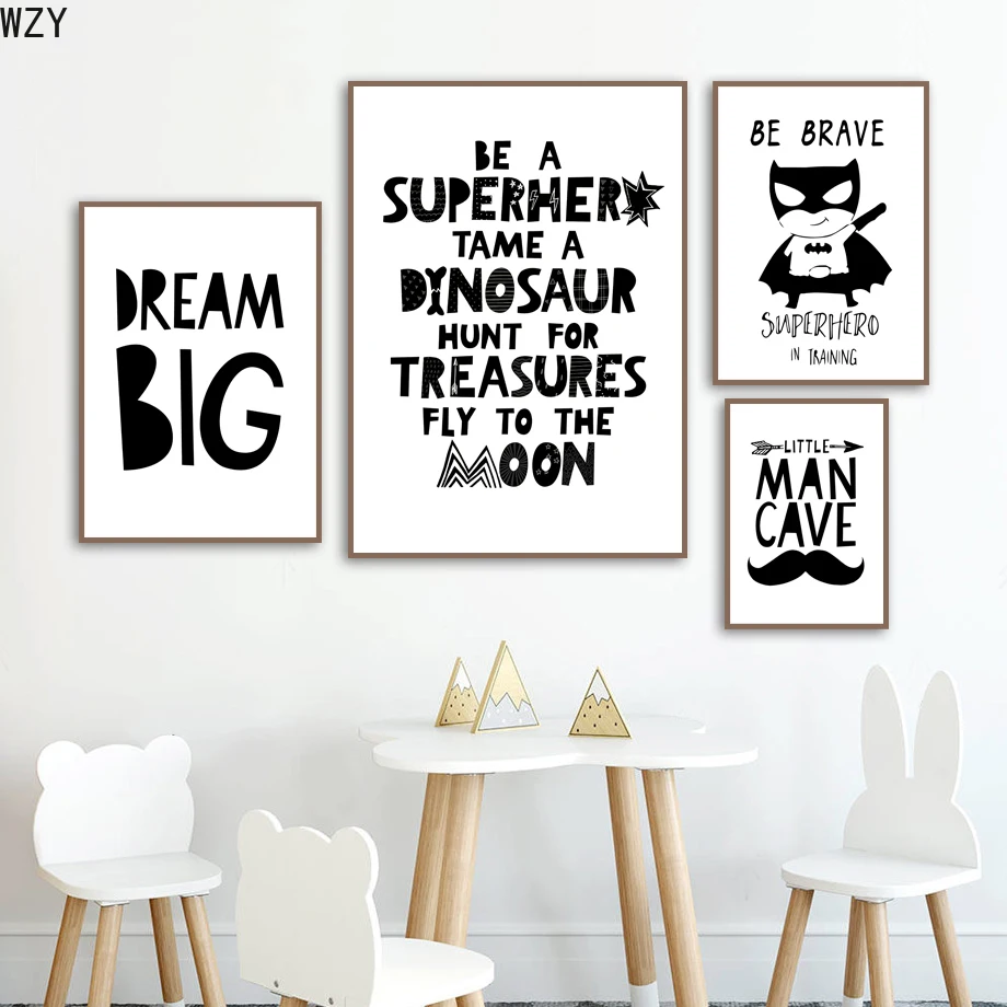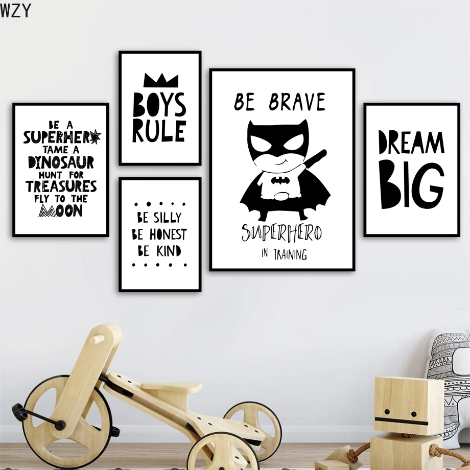 Супергероя Корона взрослую мечту! Художественная стена с цитатой холст картины черный, белый цвет мальчик дети номер Декор Nordic Плакаты и принты настенные картины