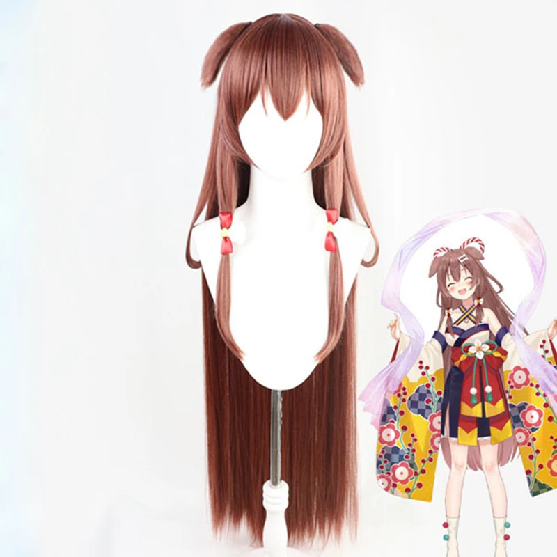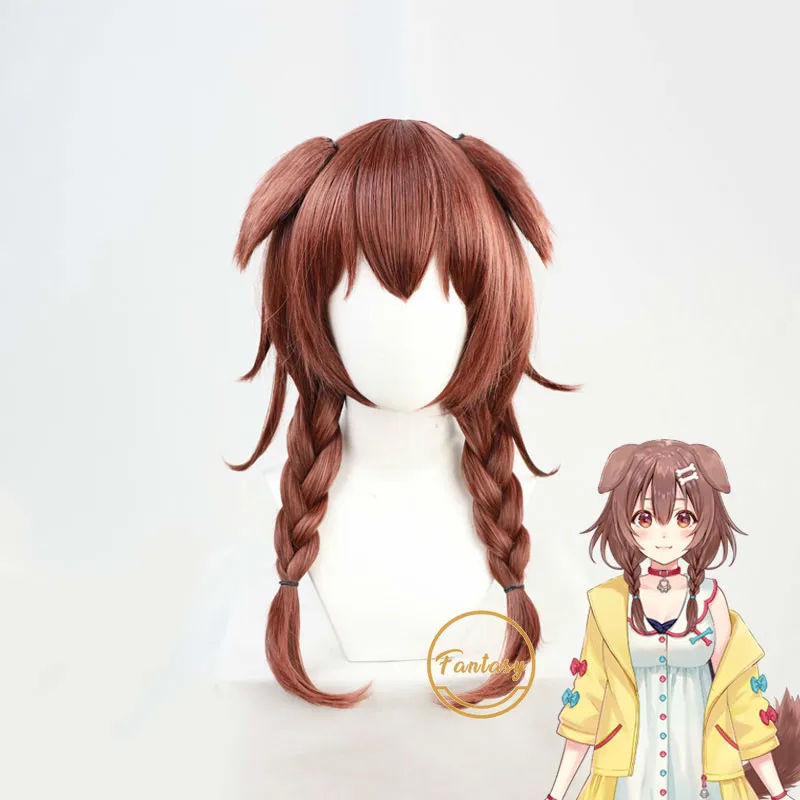 VTuber Inugami Korone косплей парик Hololive геймеры девушка длинные волнистые плетеные коричневые косы костюм на Хэллоуин парики + парик Кепка