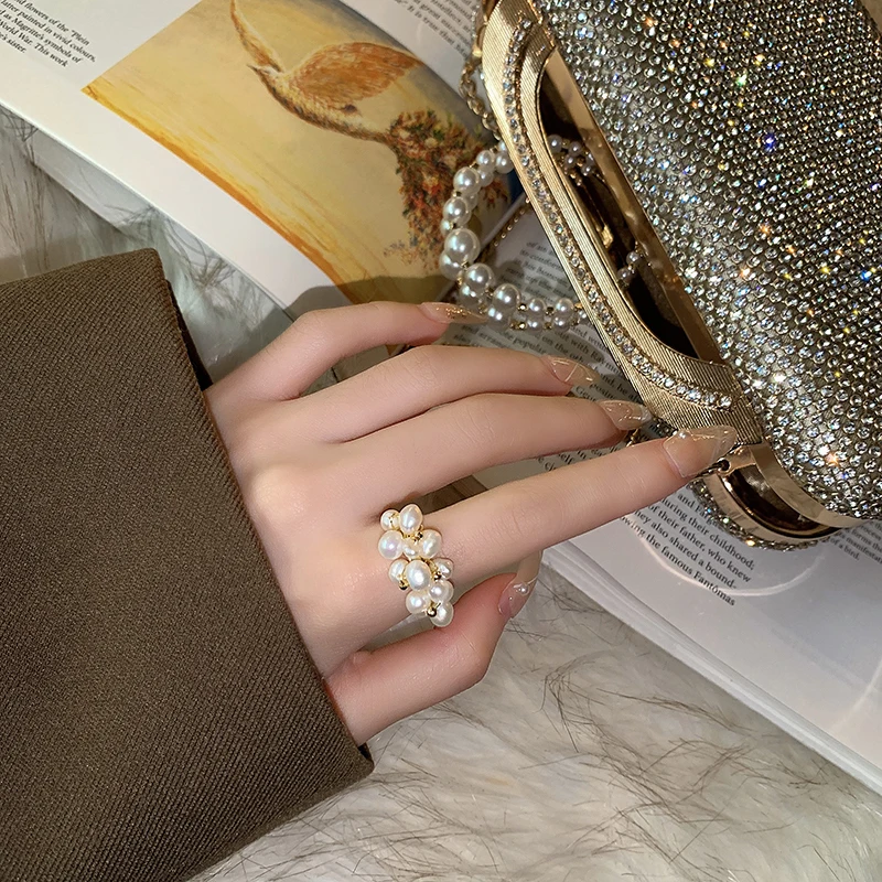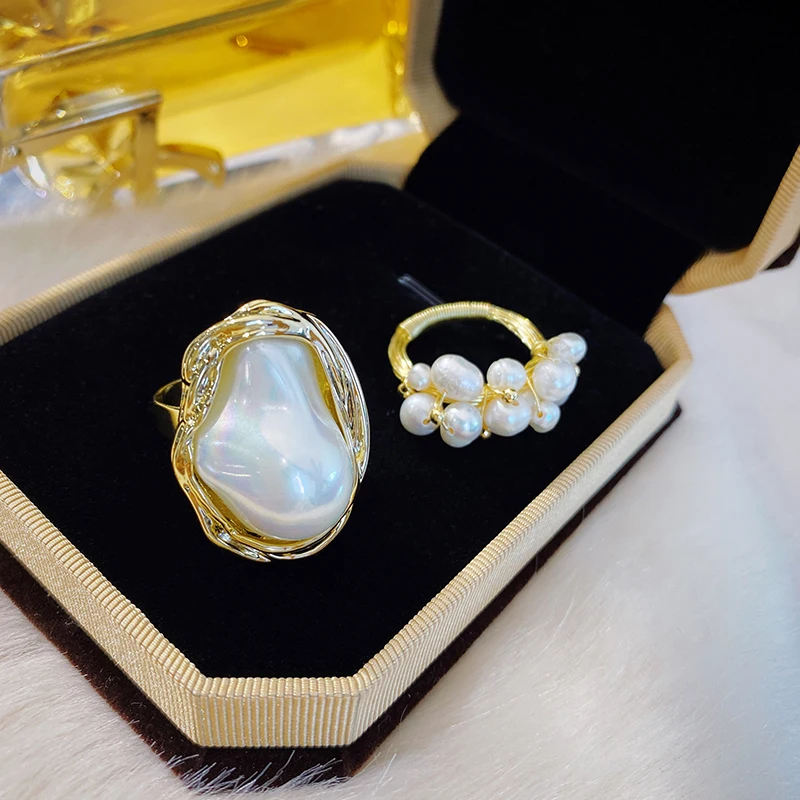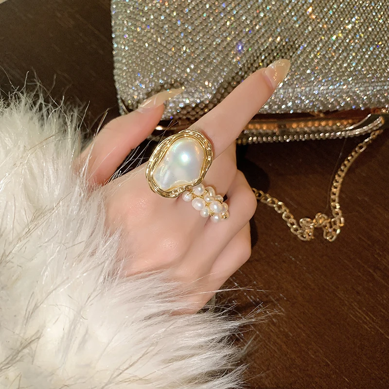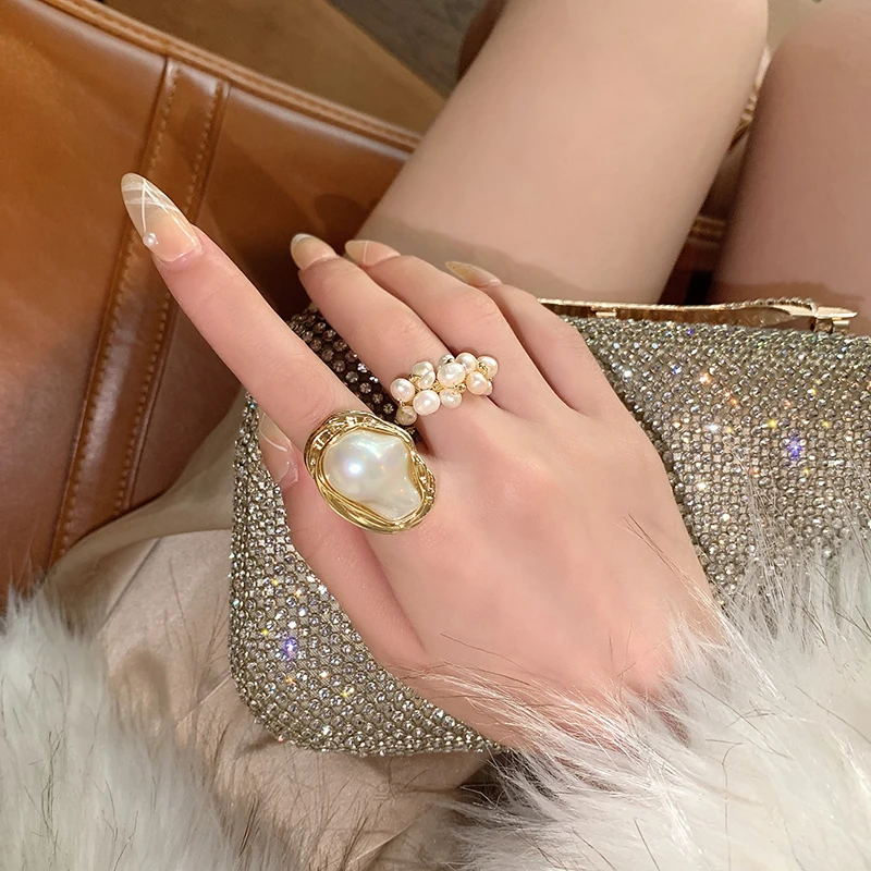 Кольцо Открытое в готическом стиле женское, модные корейские Драгоценности с геометрическим элементом барокко и жемчугом, роскошное свадебное вечернее, 2020