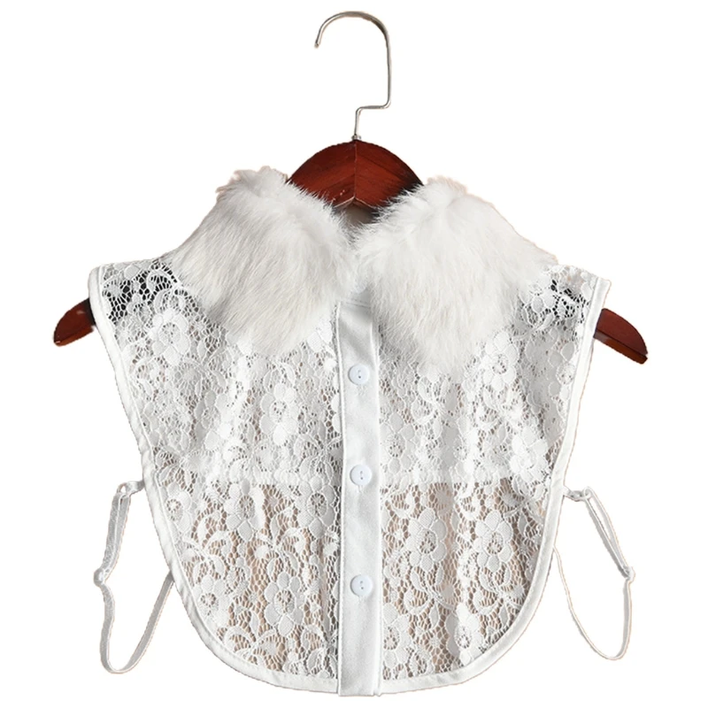 Женская блузка, свитер с круглым вырезом, ложный воротник, съемная прозрачная вышитая Цветочная кружевная однотонная полурубашка, одежда с завязкой на пуговицах