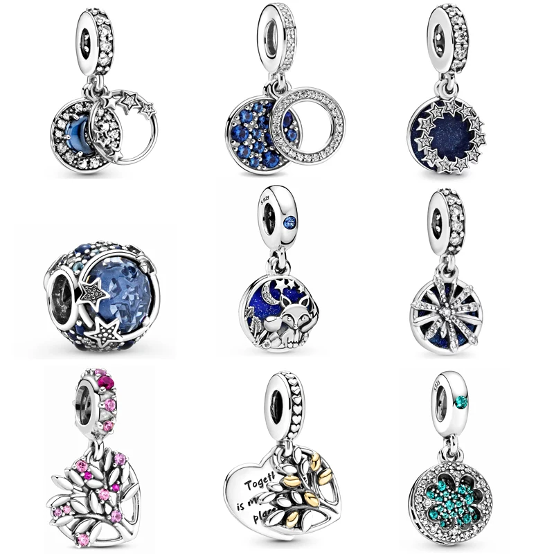 Бусины Сделай Сам S925 Подвески серебряного цвета для женщин, голуб...