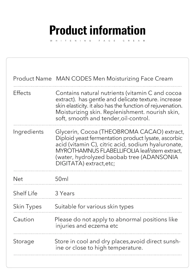 Ингредиент50g Men Anti Aging Face Cream Hyaluronic Acid Moisturizing Facial Crea