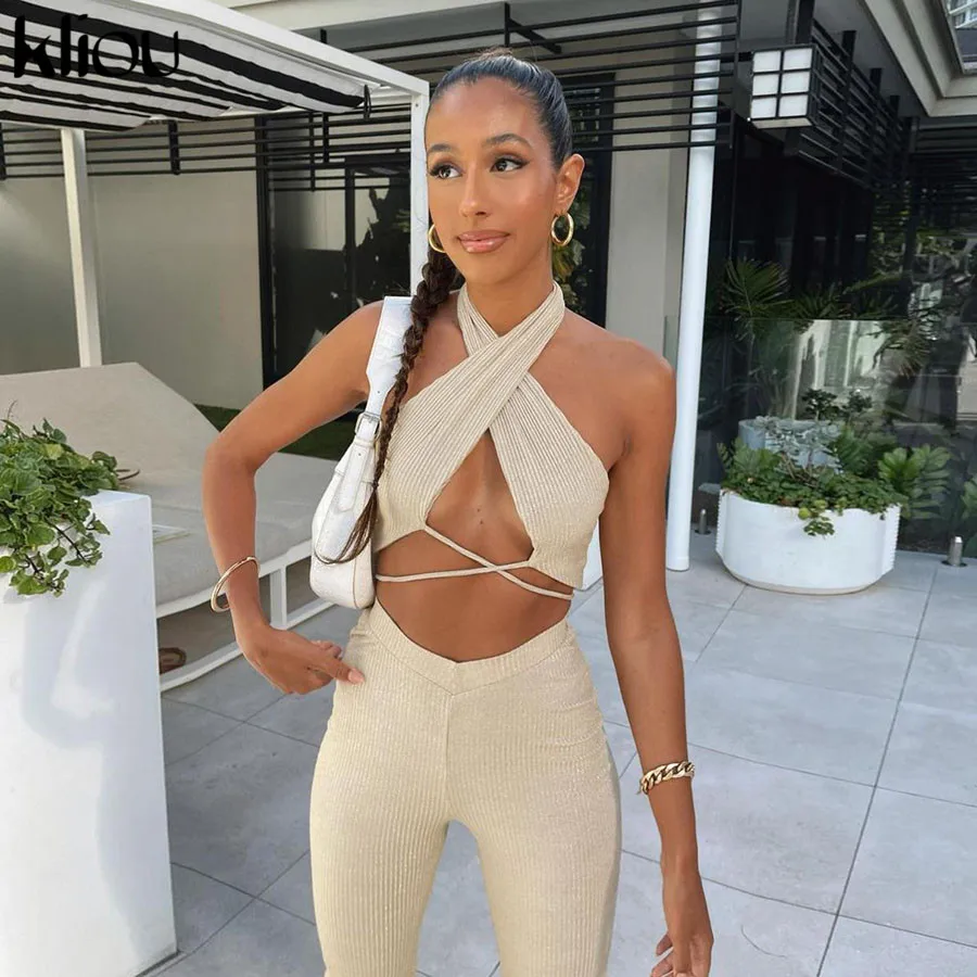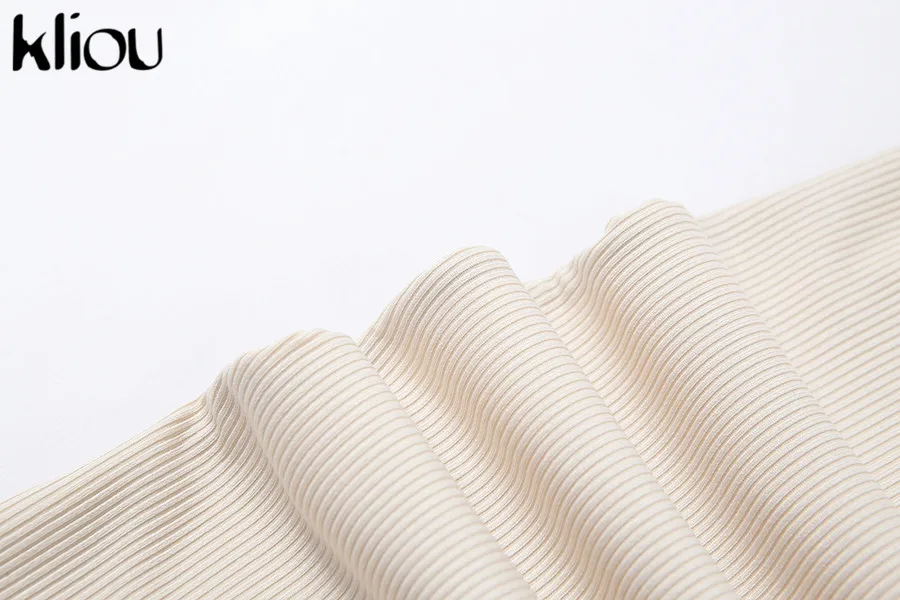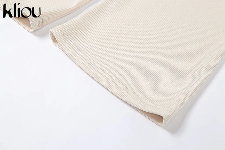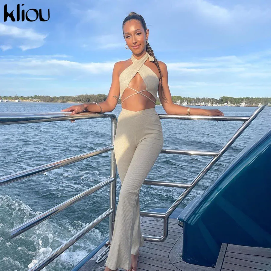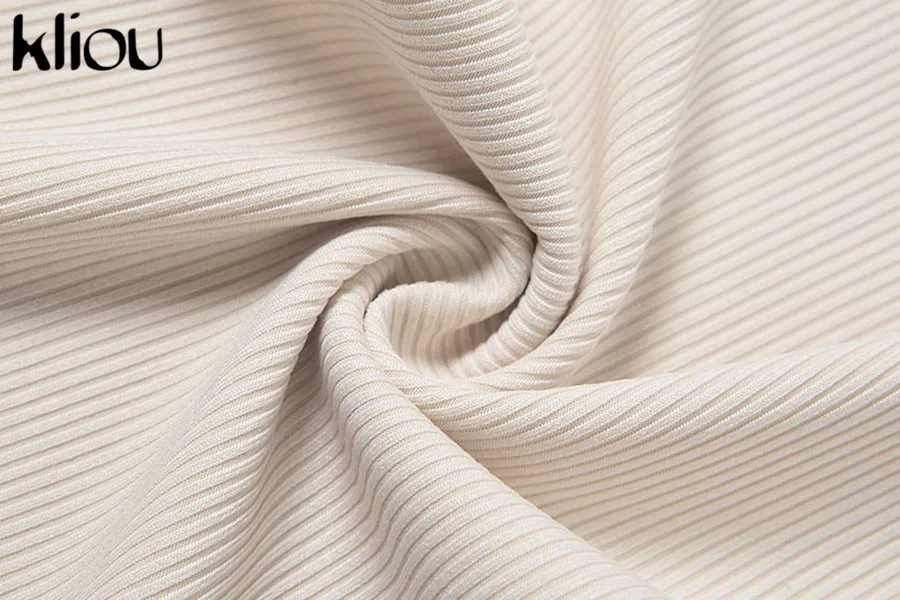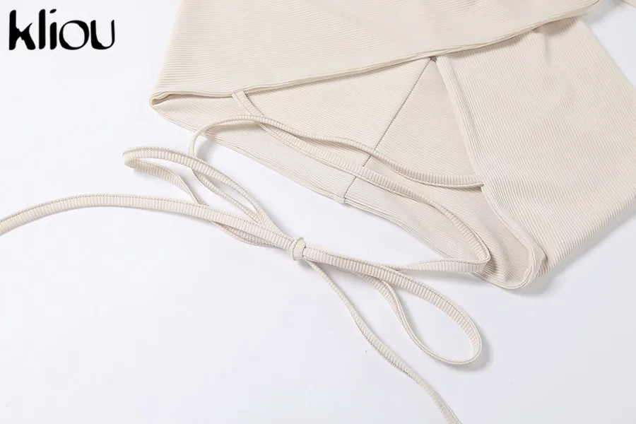 Kliou полосатый повседневный комплект из двух предметов для активных женщин 2021 уличная одежда бандажный укороченный топ и штаны с высокой талией тренировочный костюм
