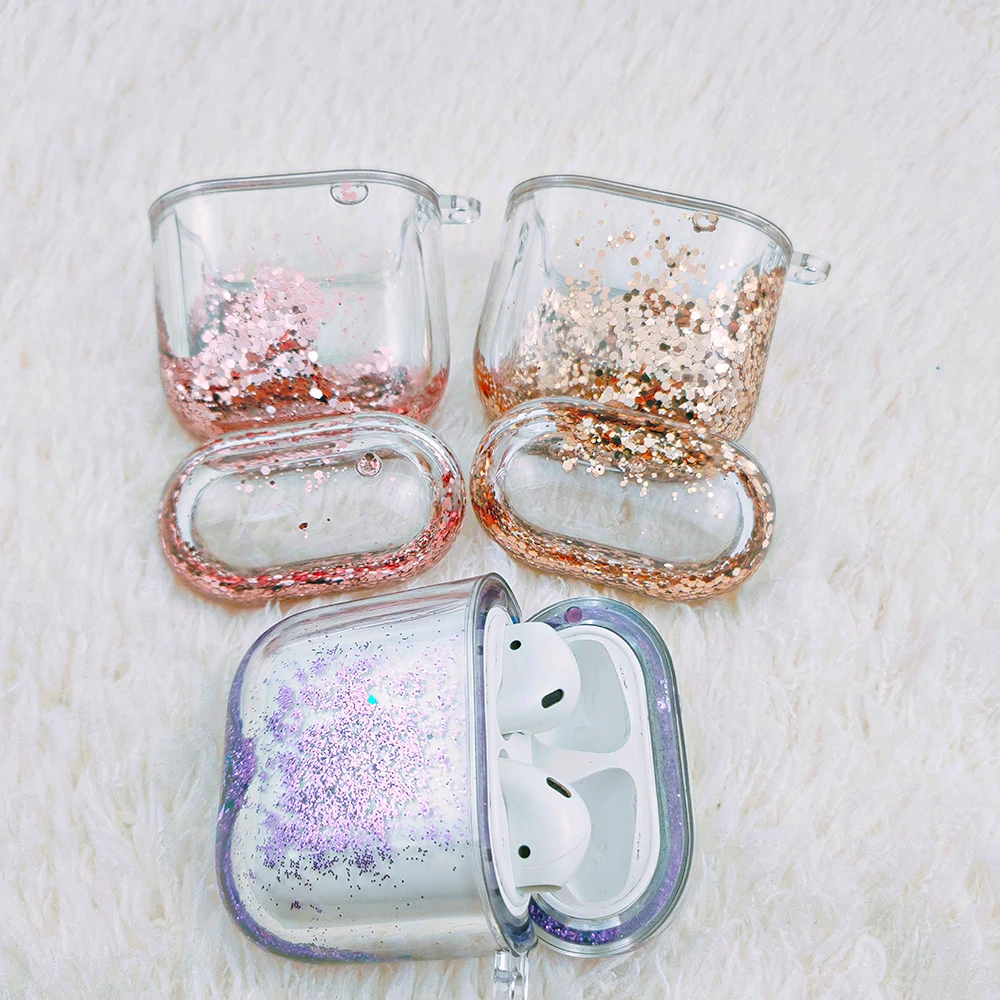 Чехол с жидкостью для AirPods Pro, чехол с блестками для Air Pod Pro, чехлы для Apple Airpods 2 1, жесткий пластиковый бампер