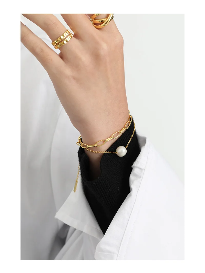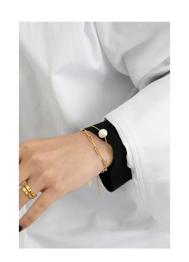 Тип Украшения: F.I.N.S минималистичный 925 пробы серебряный браслет с пресноводным жемчугом, очаровательный браслет, штабелируемые тонкие браслеты с цепочкой, изысканные ювелирные изделия