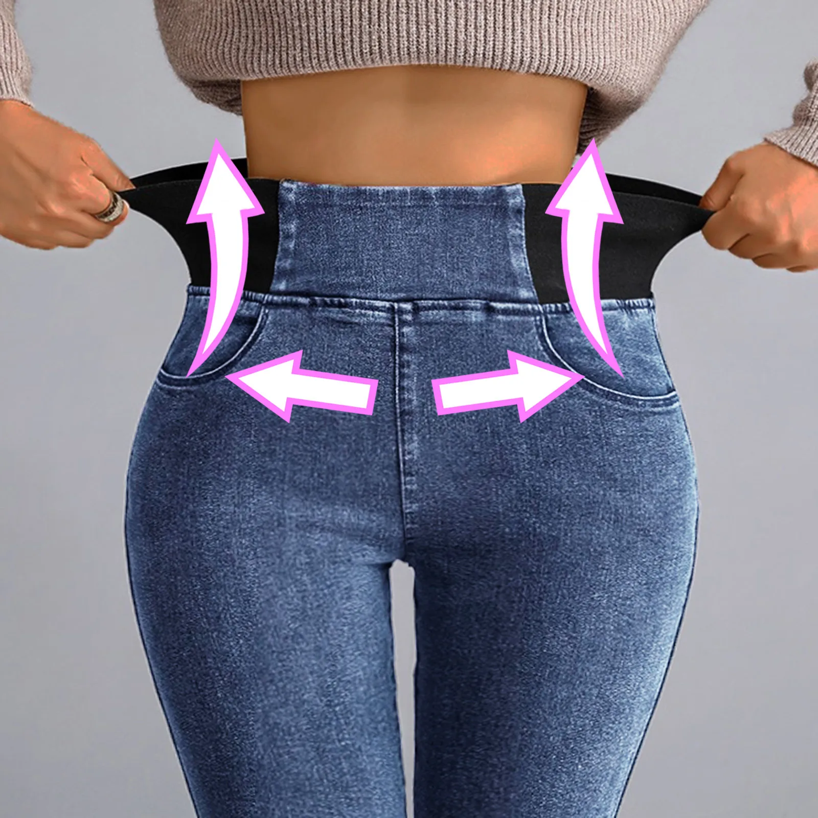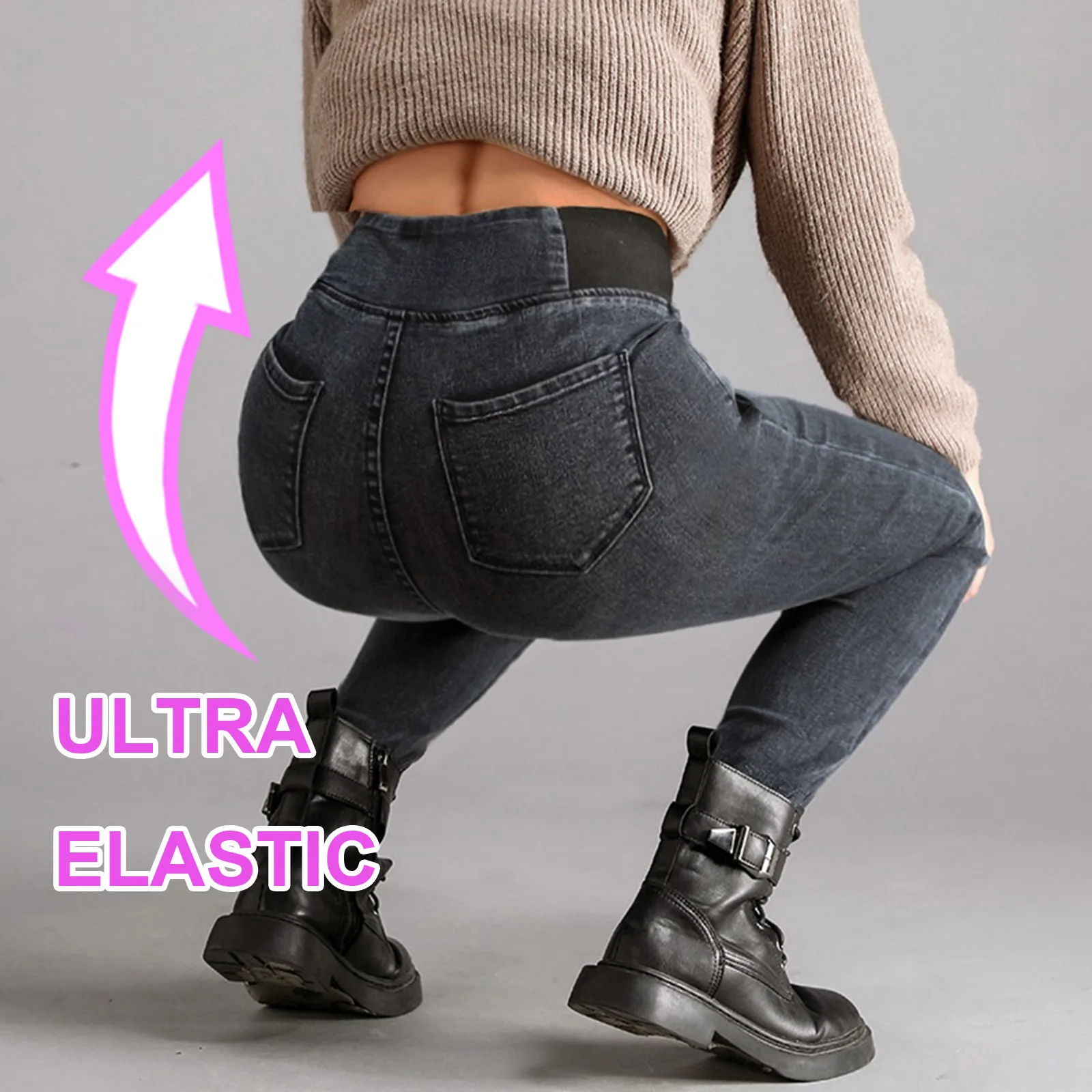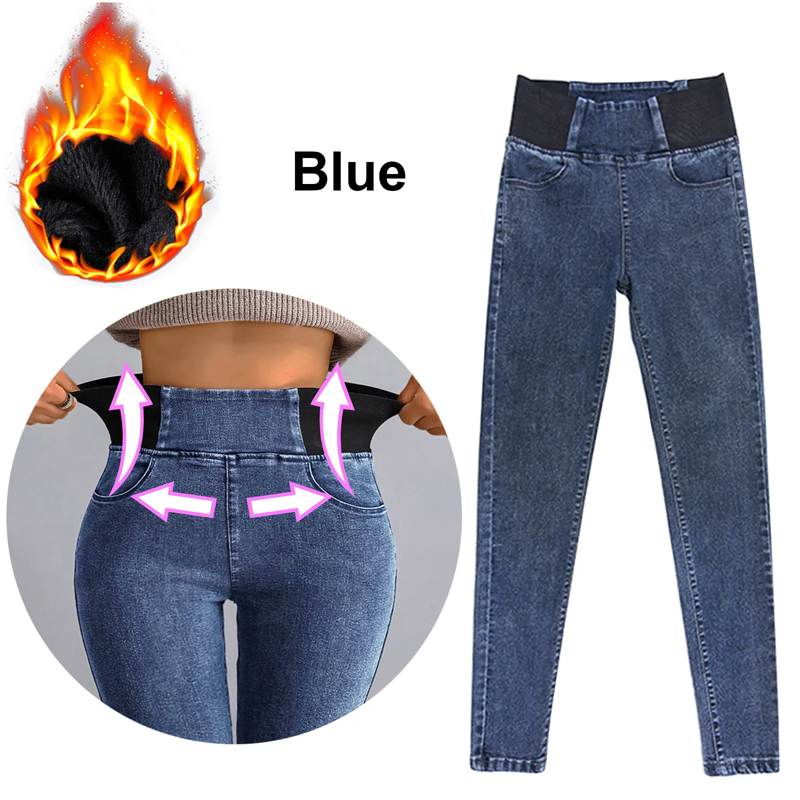 Женские теплые флисовые джинсовые леггинсы для девочек, теплые обтягивающие Стрейчевые брюки, джинсы