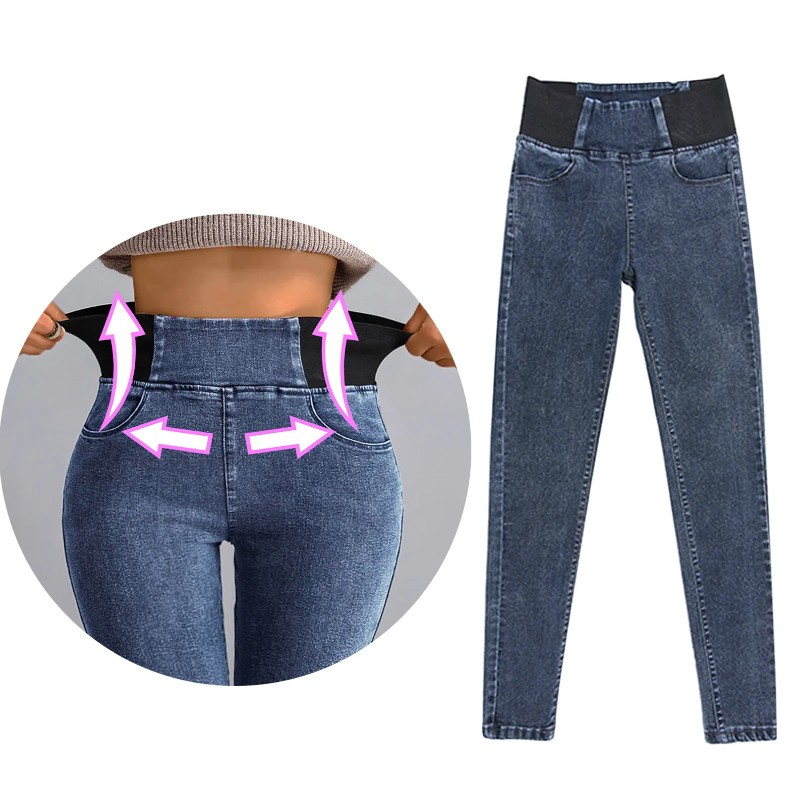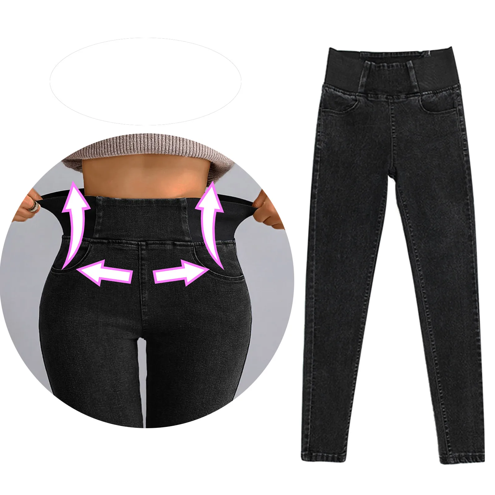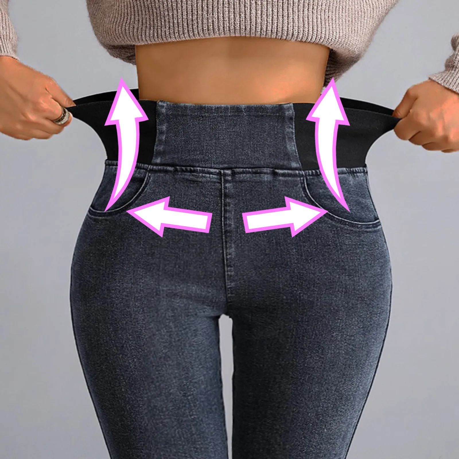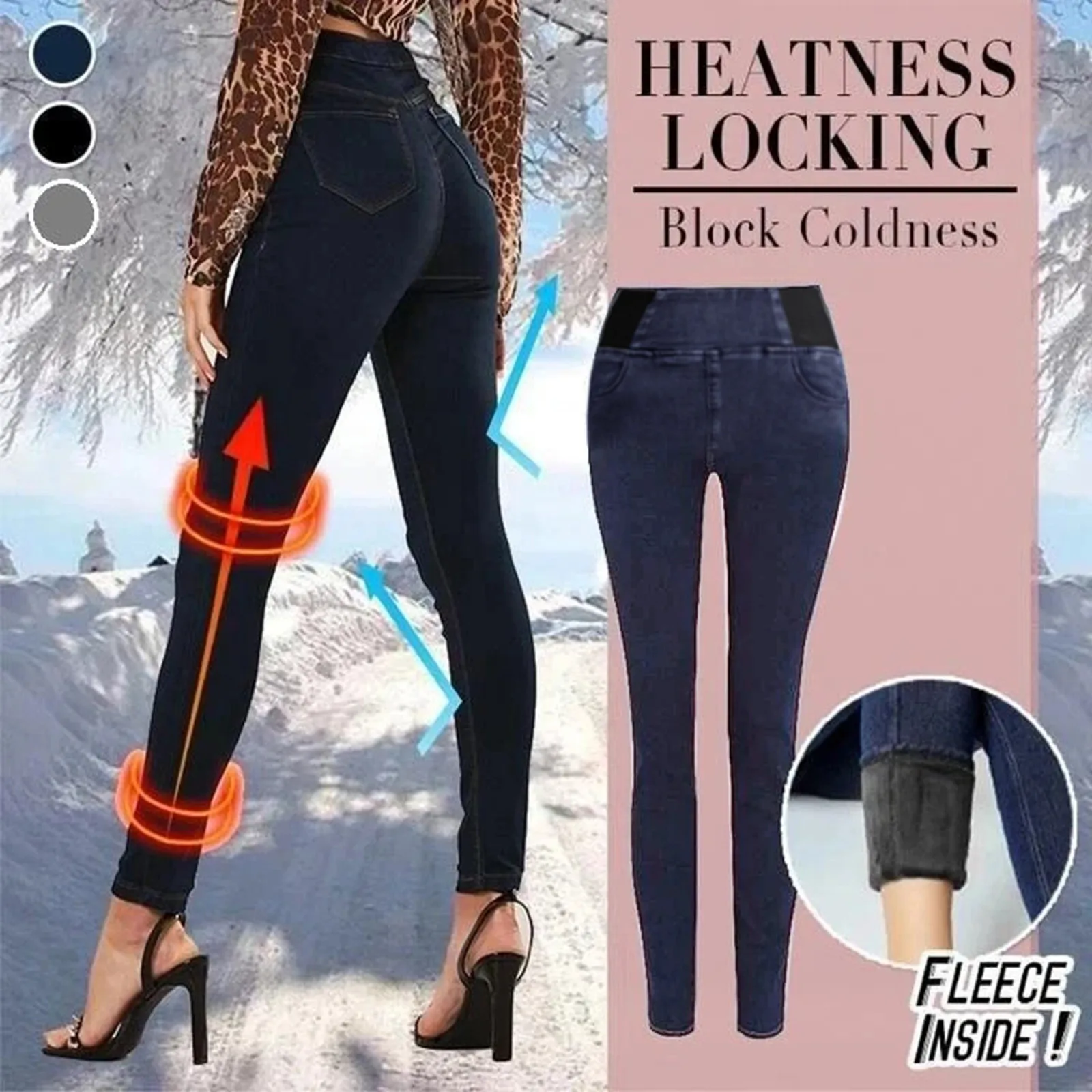 Женские теплые флисовые джинсовые леггинсы для девочек, теплые обтягивающие Стрейчевые брюки, джинсы