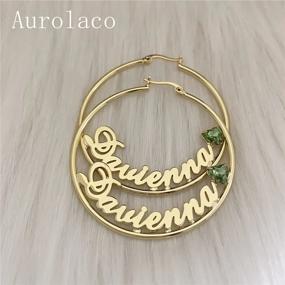 AurolaCo серьги с именем на заказ с камнем по месяцу рождения серьги из нержавеющей стали с именем на заказ большие серьги-кольца с именем для женщин Подарки