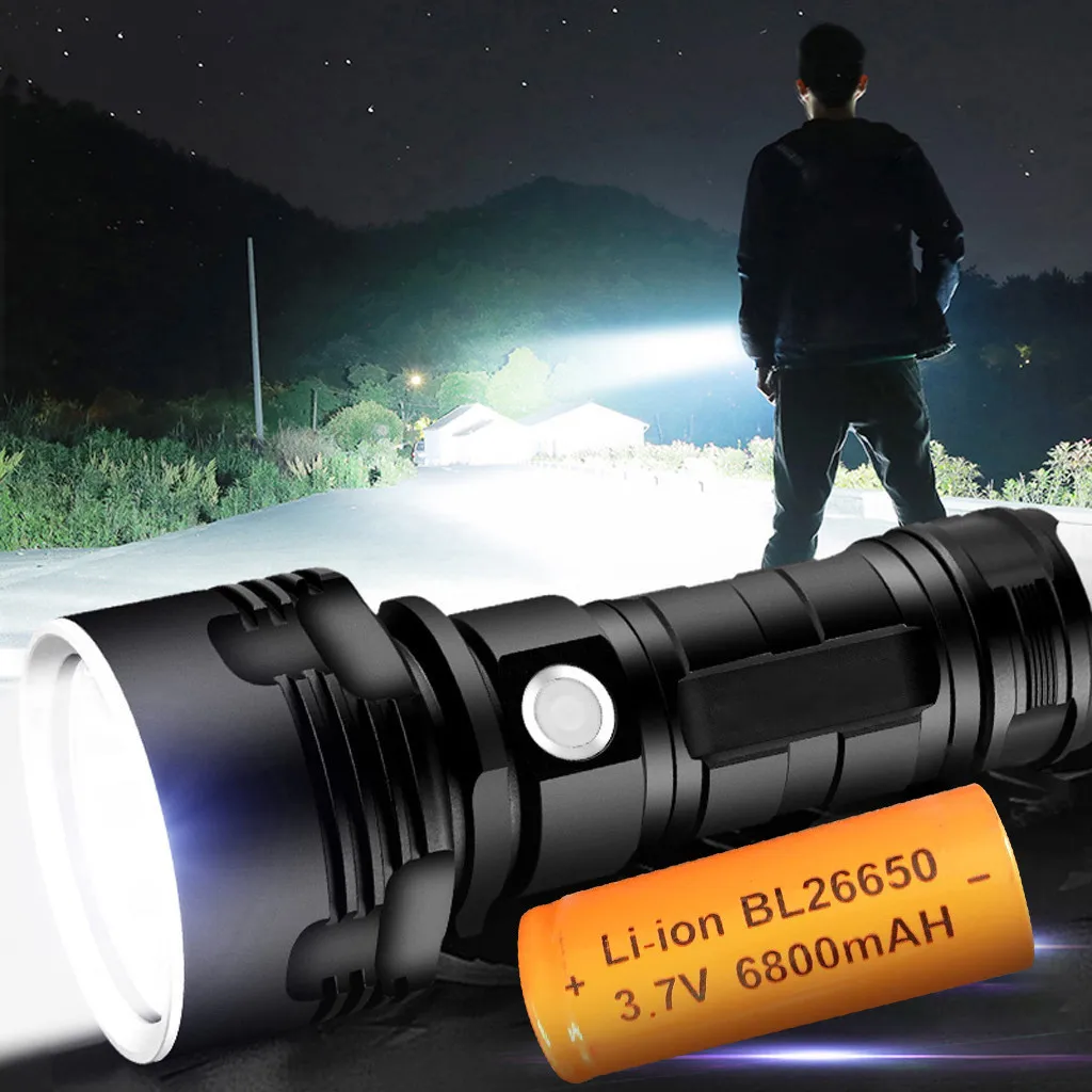 Фонарик мощный светодиодный XHP50, водонепроницаемый Ультраяркий алюминиевый фонарь с 3 режимами освещения, зарядка через USB