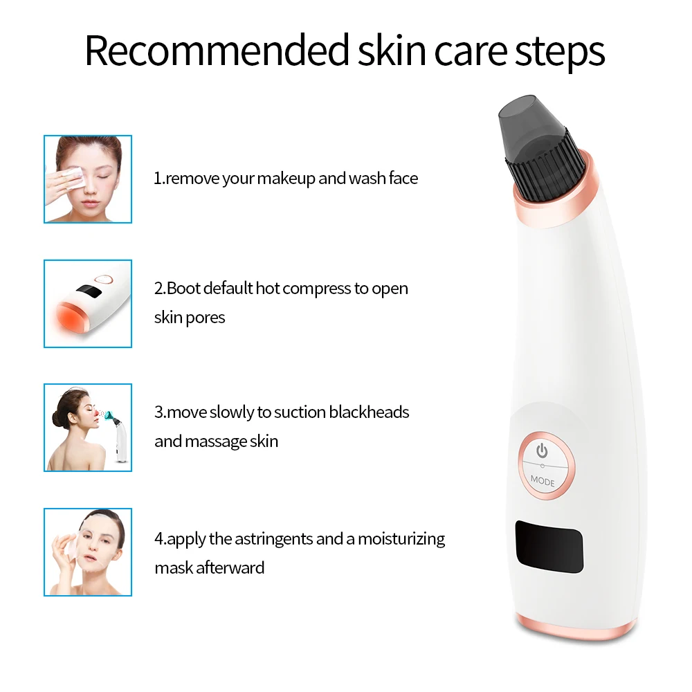 5 сменных всасывающих головок для различных потребностей кожи: Обеспечить 5 профессиональных всасывающих головок для различных условий кожи. Выбор разных размеров головок для различных лицевых зон. Быть вашим профессиональным домашним спа-средством по уходу за кожей.
