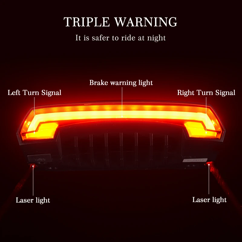 3 Mode LightingRed light ,Yellow turn signal,Red laser light