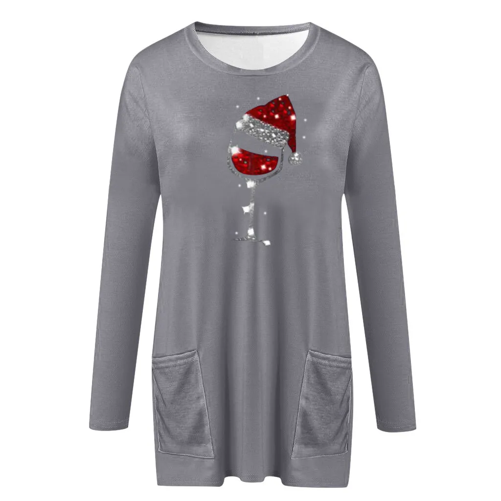 Женская рождественская толстовка с длинными рукавами, Повседневная Блузка