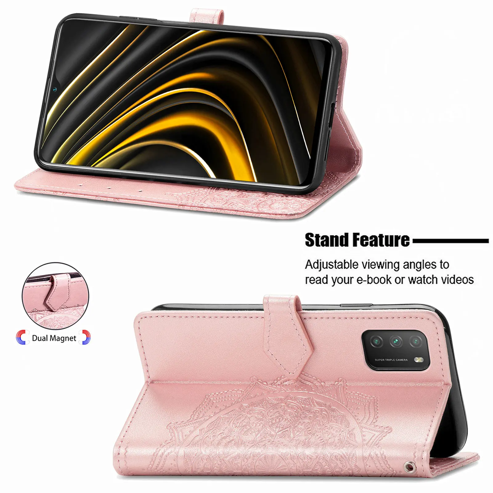 Poco M3, чехол для Xiaomi Poco M3, чехол с откидной крышкой 6,53 дюйма, кожаный чехол с цветами мандалы для телефона Xiaomi Poco M3 M 3 M2010J19CG, чехол