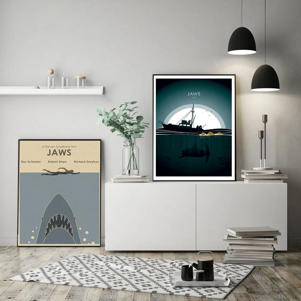 Плакаты челюсти в стиле ретро популярные, минималистичные художественные постеры из крафт-бумаги для рисования фильмов, домашний декор для гостиной, без рамки