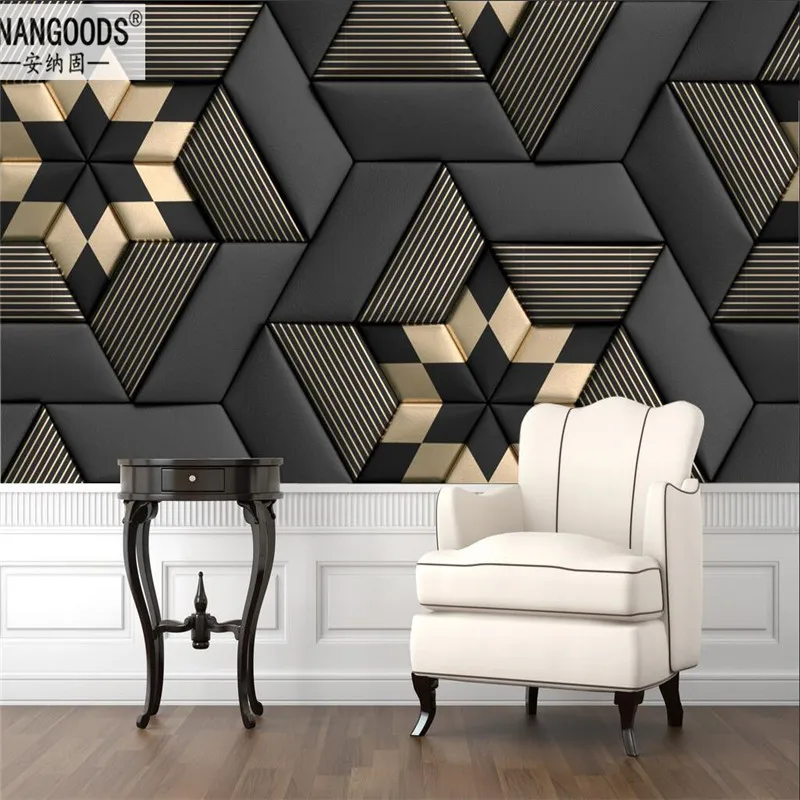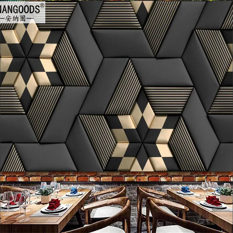 Пользовательские Современные черные кожаные с золотыми геометрическими полосками Декор настенная бумага Гостиная спальня офис бар КТВ настенная бумага 3D