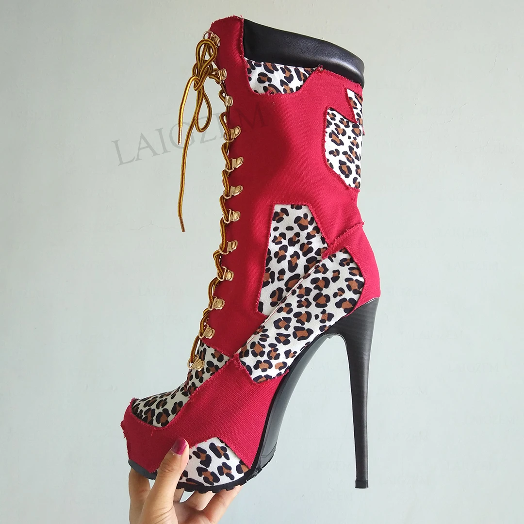 Женские ботинки на высокой платформе DOBANER, Лоскутные ботинки на шнуровке и высоком каблуке, привлекательная обувь больших размеров 43, 44, 50, 52