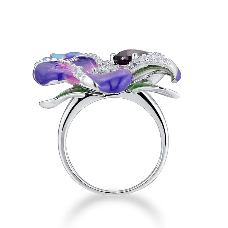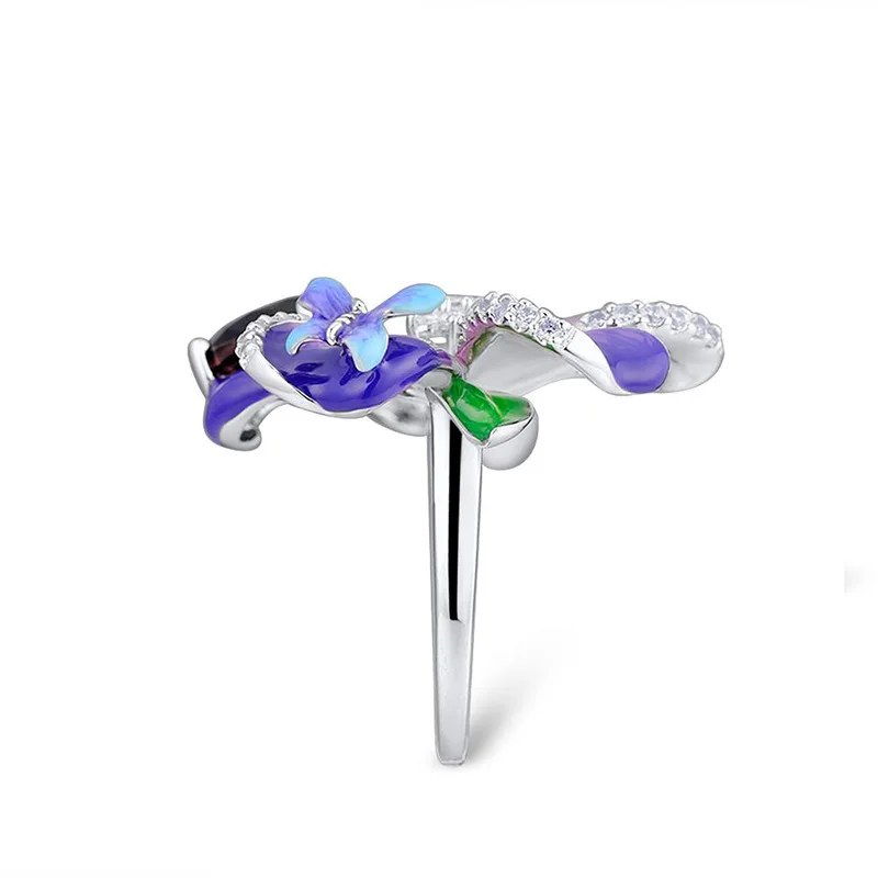 Изысканное роскошное женское кольцо из серебра 925 пробы с фиолетовым цветком бабочкой из фиолетового циркония модные эмалированные женские кольца ручной работы