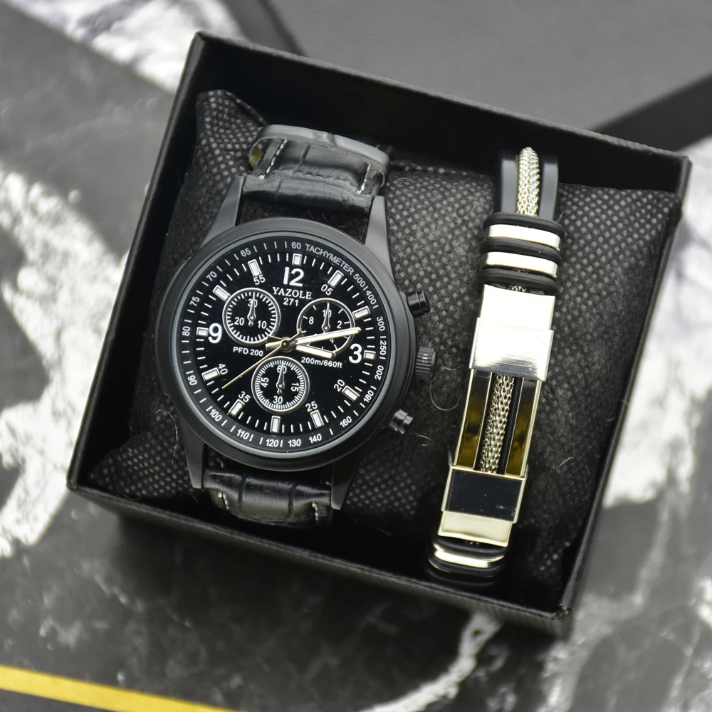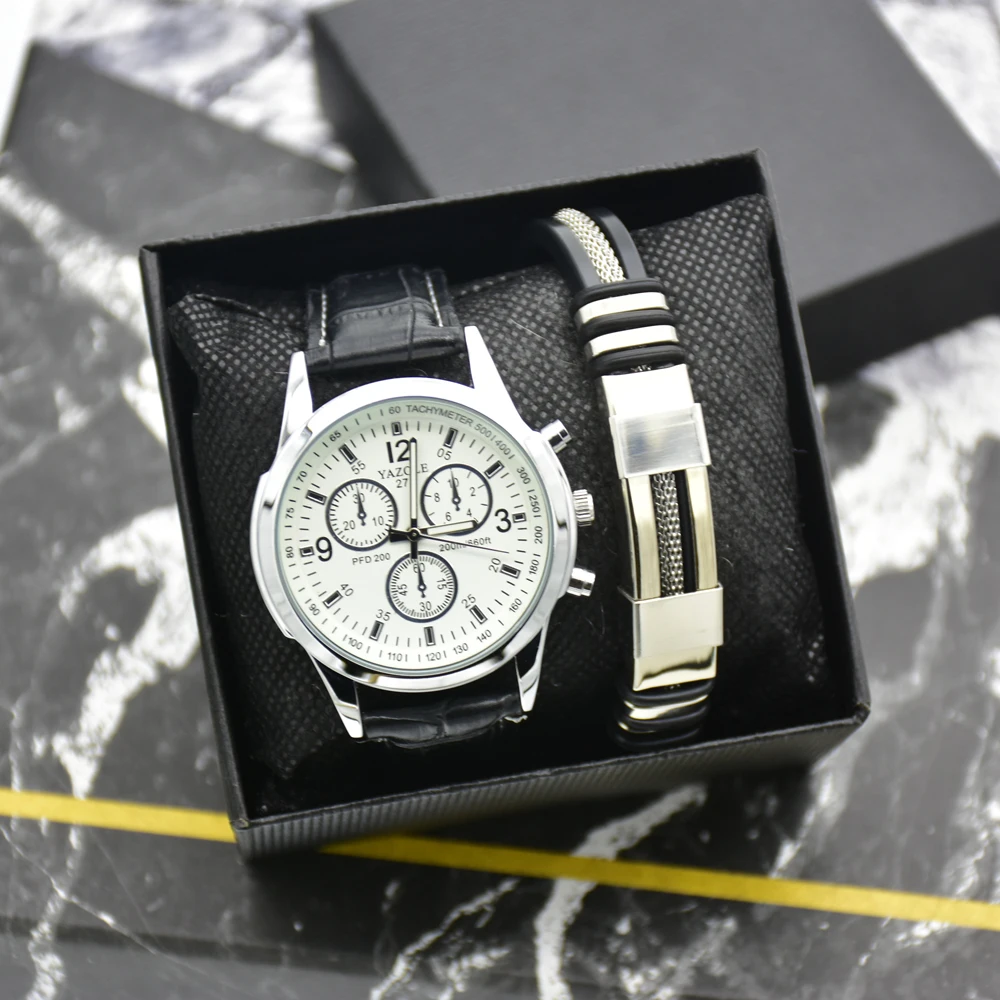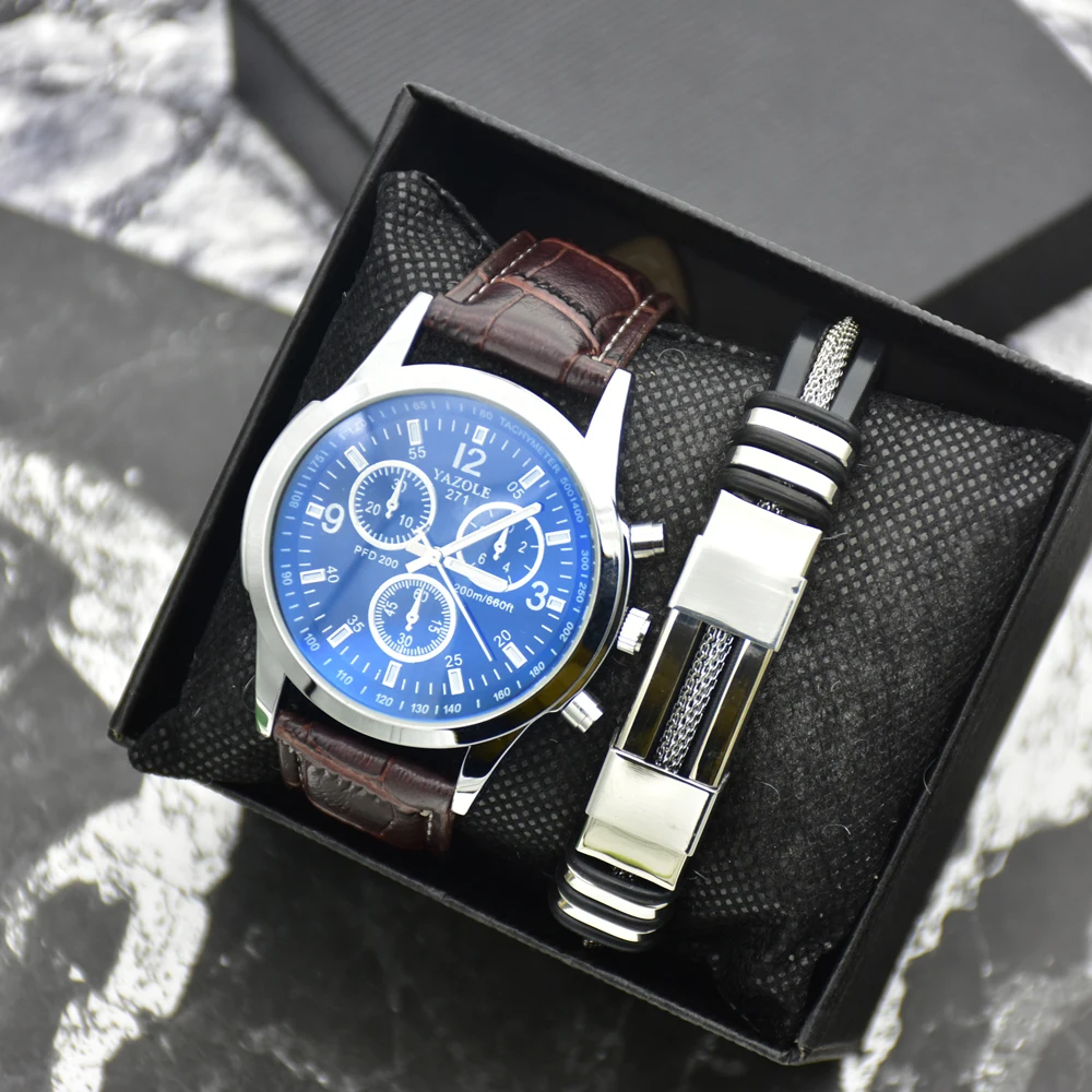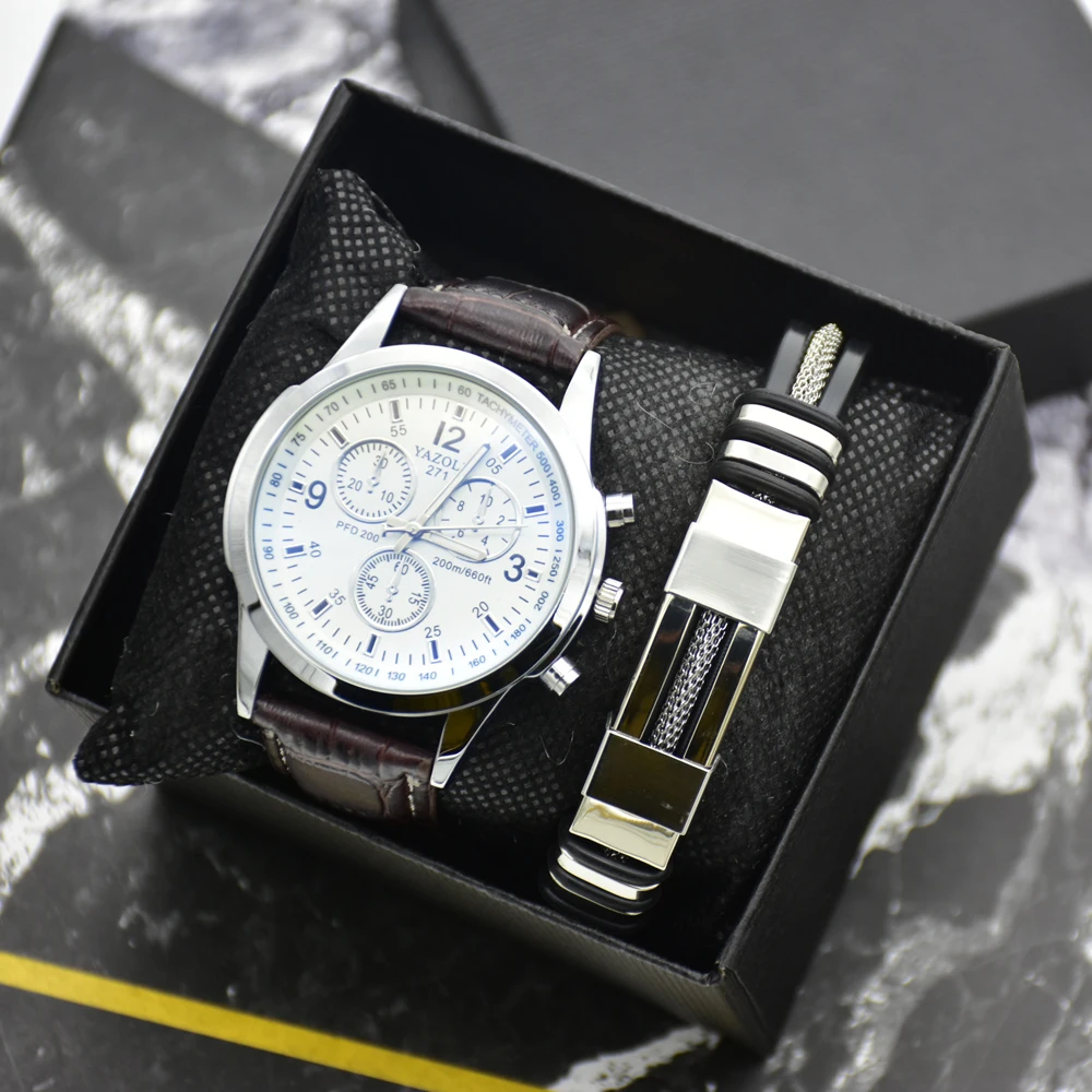 Мужские часы с браслетом и подсветильник кой, водонепроницаемые, повседневные, деловые, кварцевые часы, 2 шт.