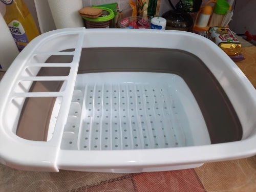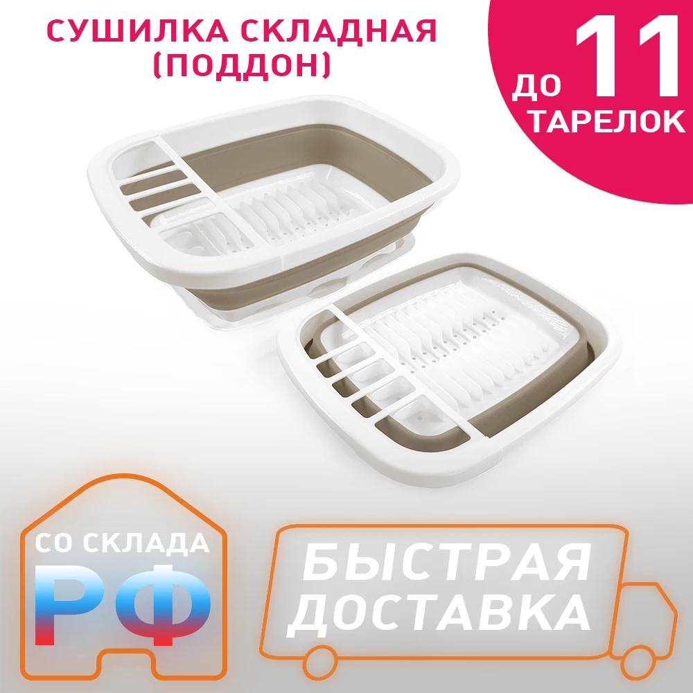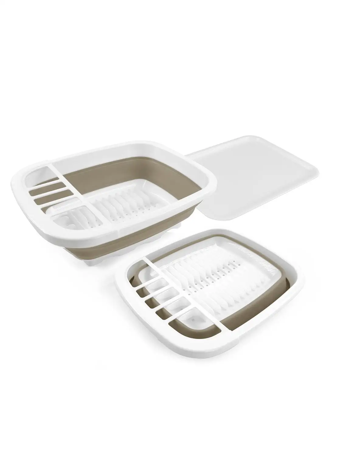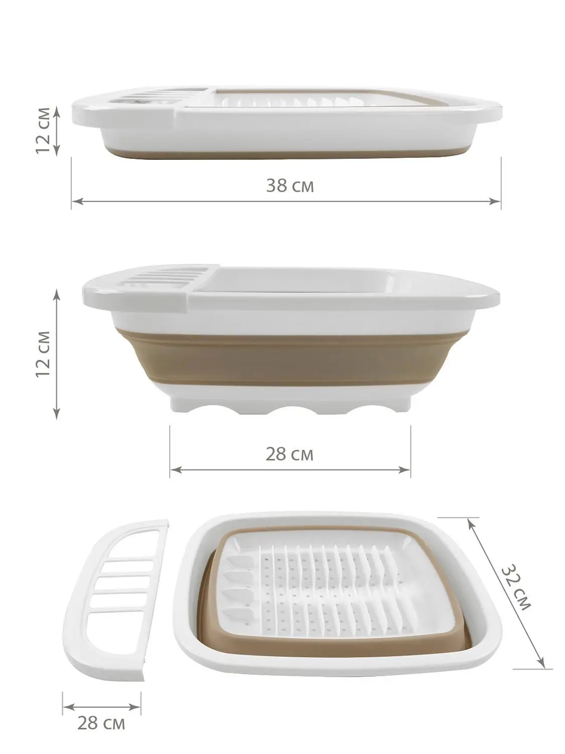 Estares Сушилка складная силиконовая (поддон) ES-DRC-portable-38x32х12(5)-whitebeige