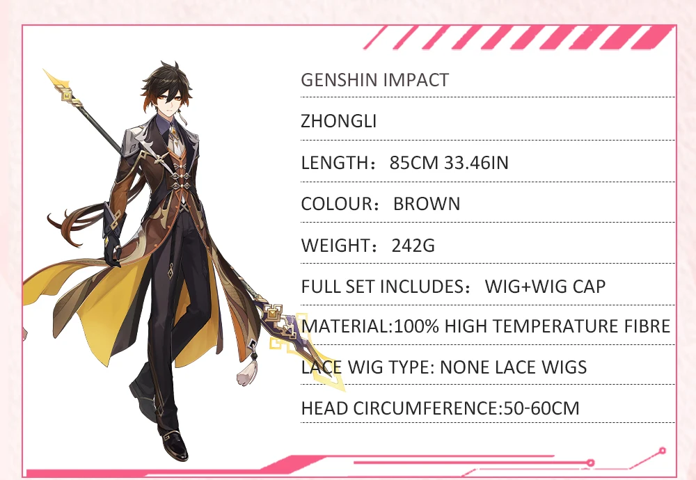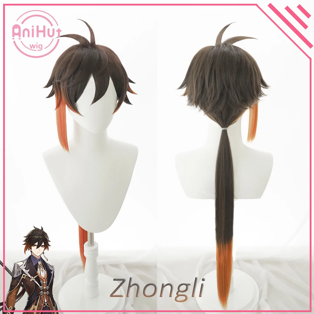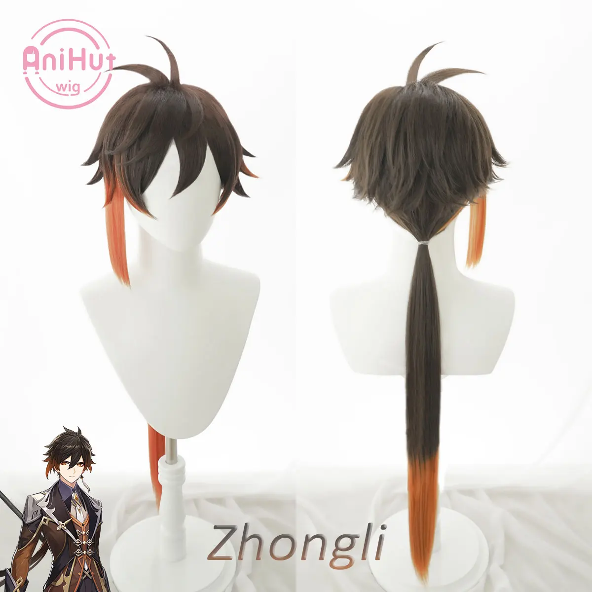 Парик Genshin Impact для косплея Zhongli, коричневые термостойкие синтетические волосы для косплея на Хэллоуин