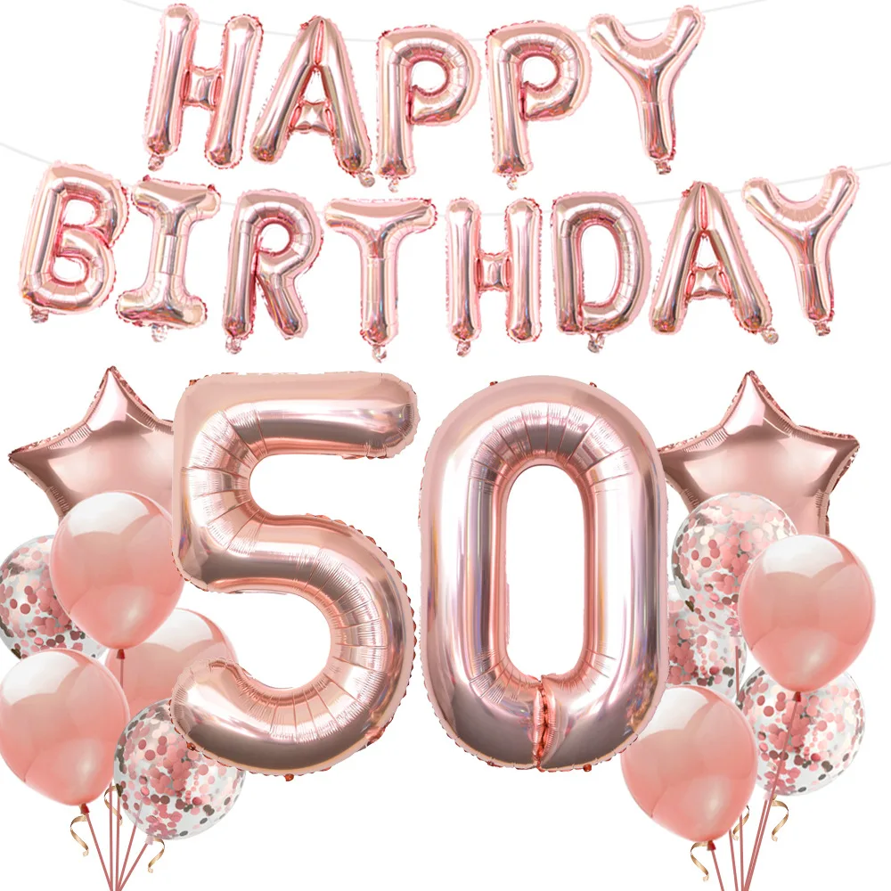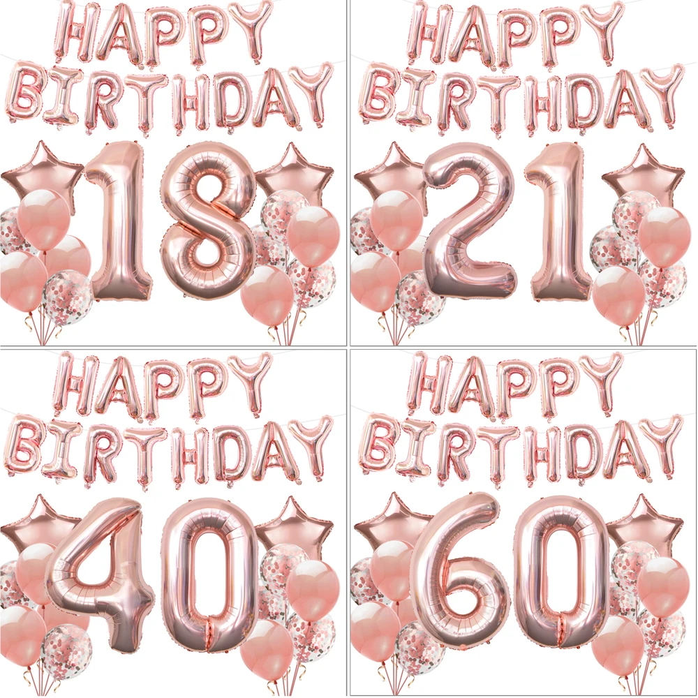 1 Набор из розового золота 18 21 30 40 50 60th фольгированные шары С Днем Рождения баннера для девочек Для женщин Взрослый День рождения украшения