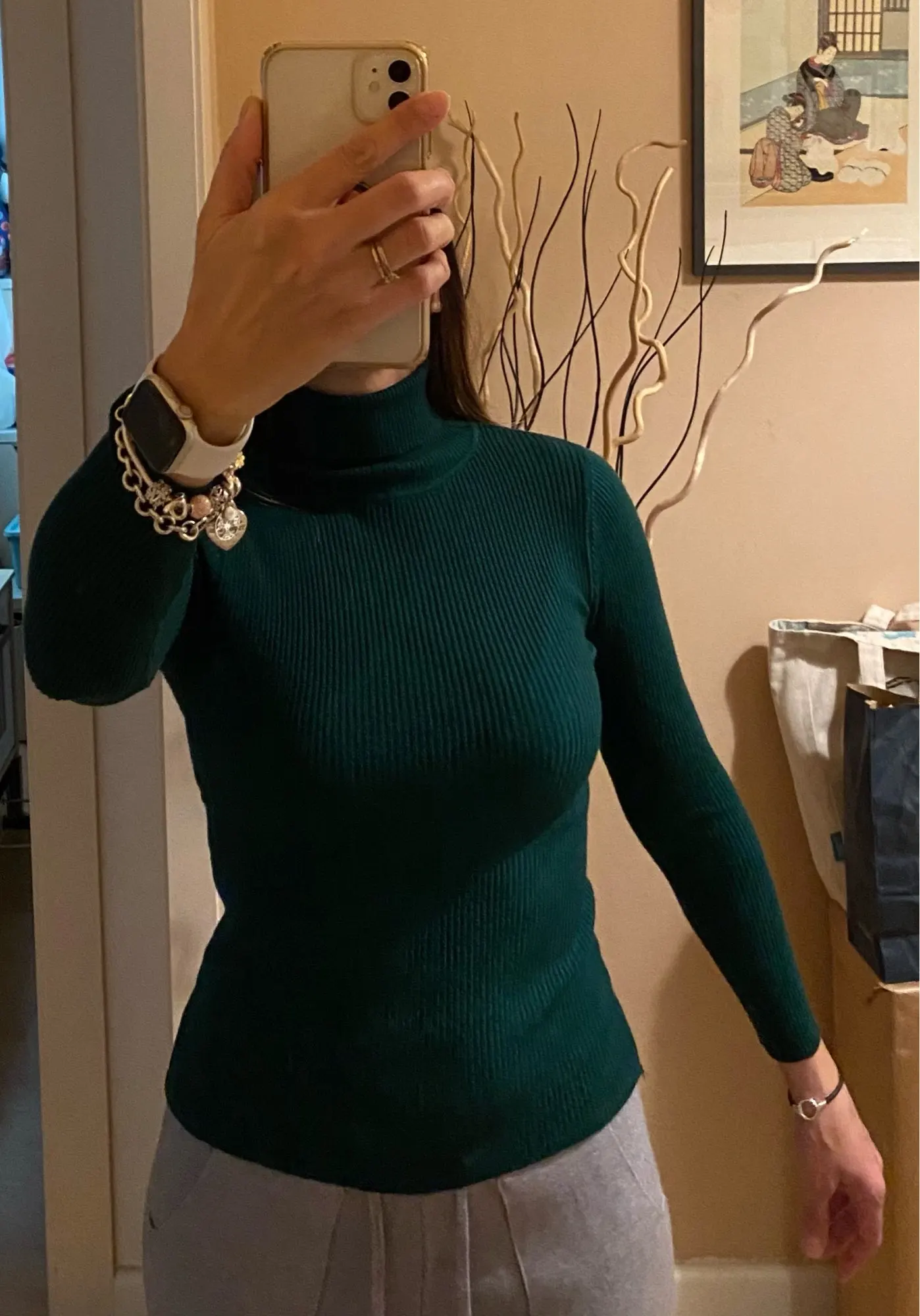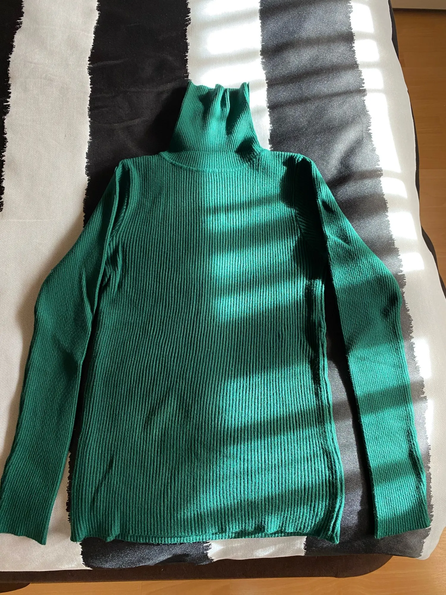 Отличная водолазка. Ткань очень приятная, цвет красивый (заказывала зелёный). На мой 44 села идеально. Пришла быстро