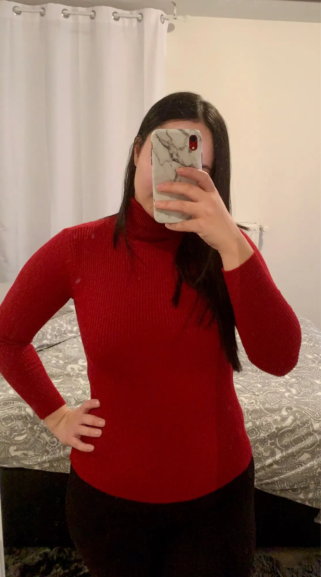 Хорошая кофточка, лёгкая, не тёплая, но на холодное лето под куртку будет шикарно. Заказала красный цвет, думала будет немного темнее, но и такой цвет вроде тоже хорош. На ог 93 и от 66см немного большеват.