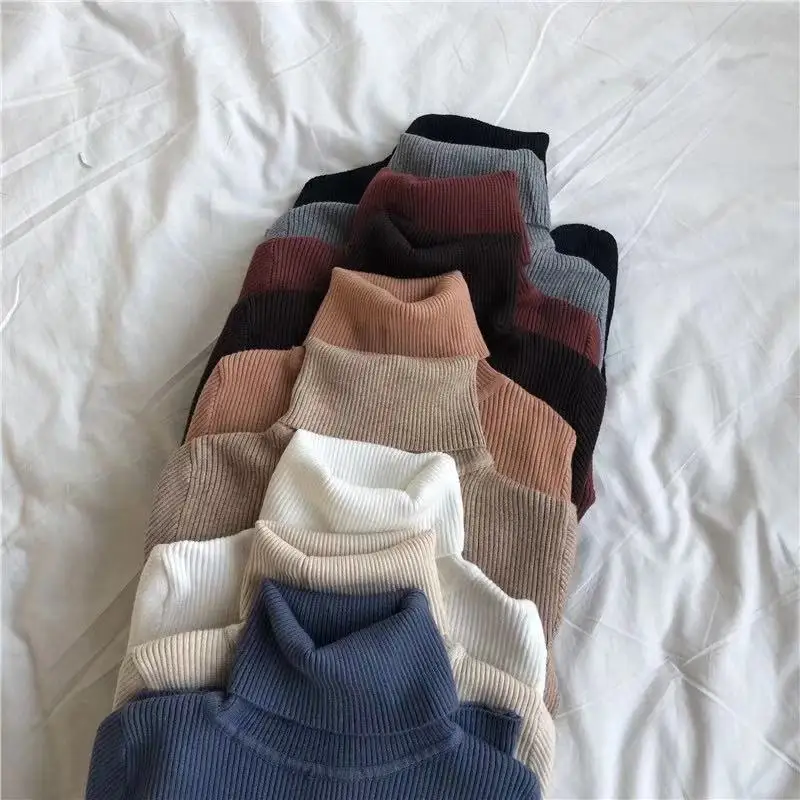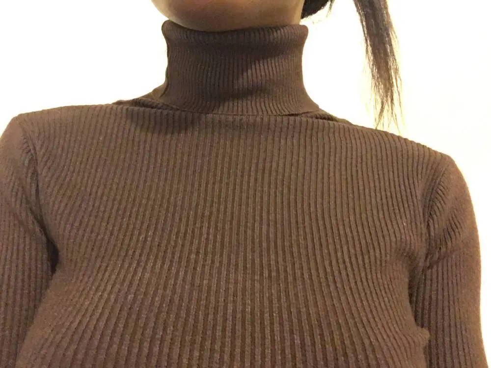 Свитер женский вязаный, с высоким воротом, коричневый, белый, на осеньзиму, 2021