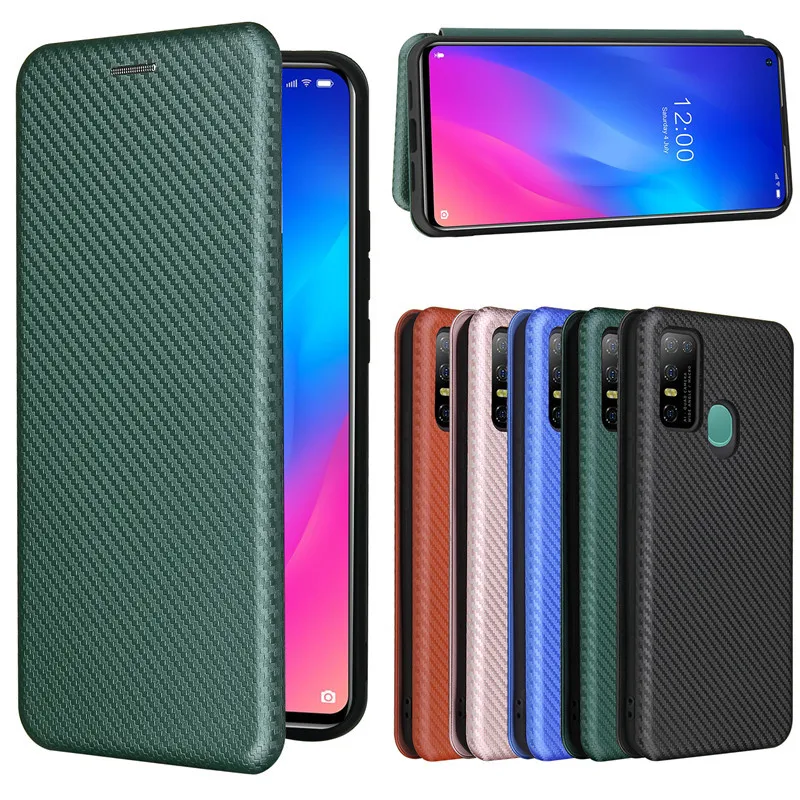 Чехол-книжка для Umidigi A9 Pro, углеродное волокно, Магнитная подс...