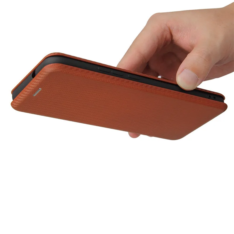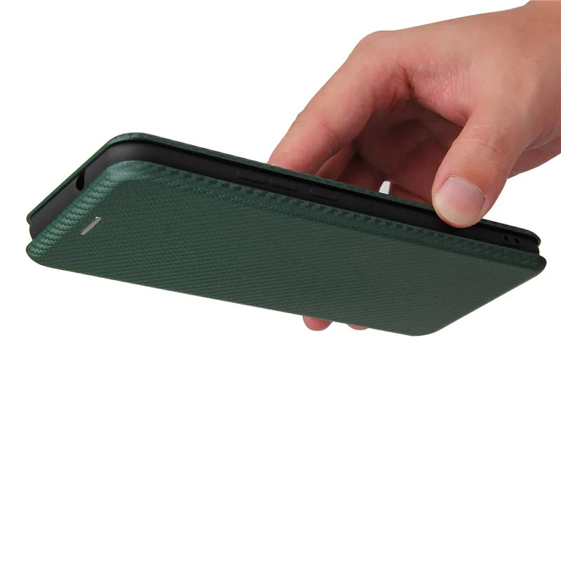 Модный карбоновый противоударный чехол-книжка с магнитной застежкой...