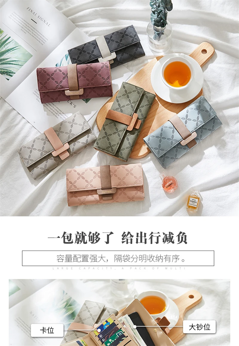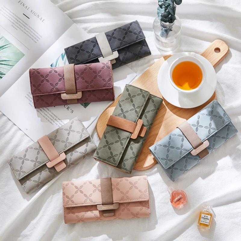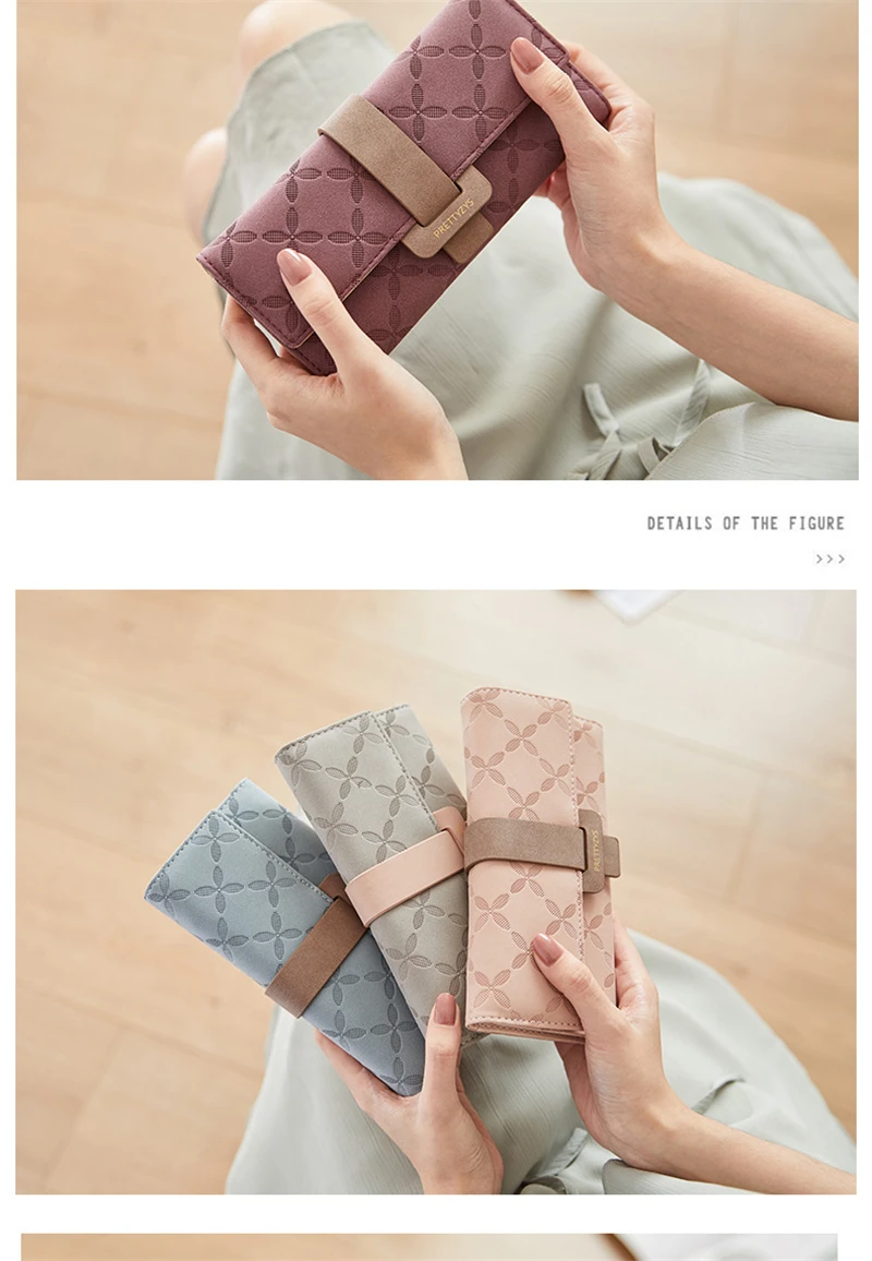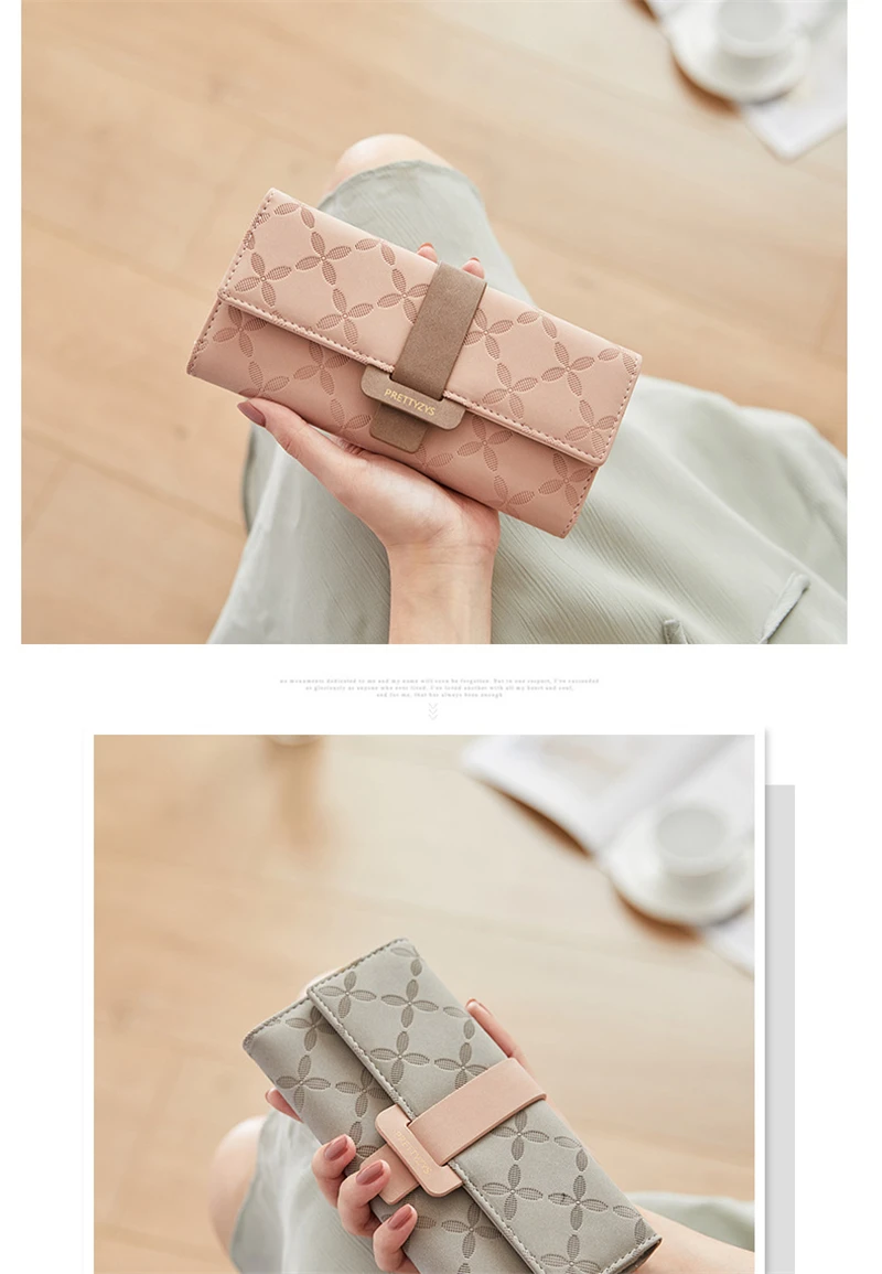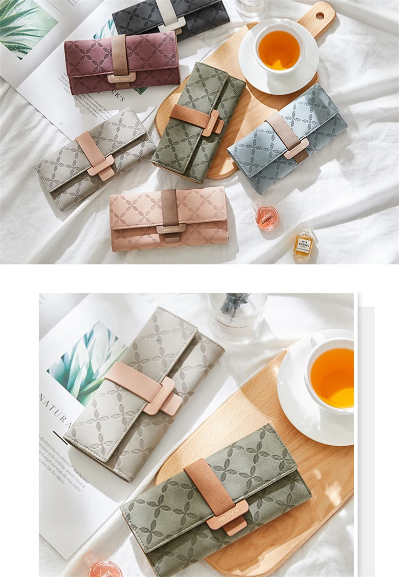Длинный женский кошелек в стиле ретро, клетчатые матовые кожаные кошельки с застежкой тройного сложения для монет, женский клатч, сумка для телефона, держатель для карт, зажим для денег
