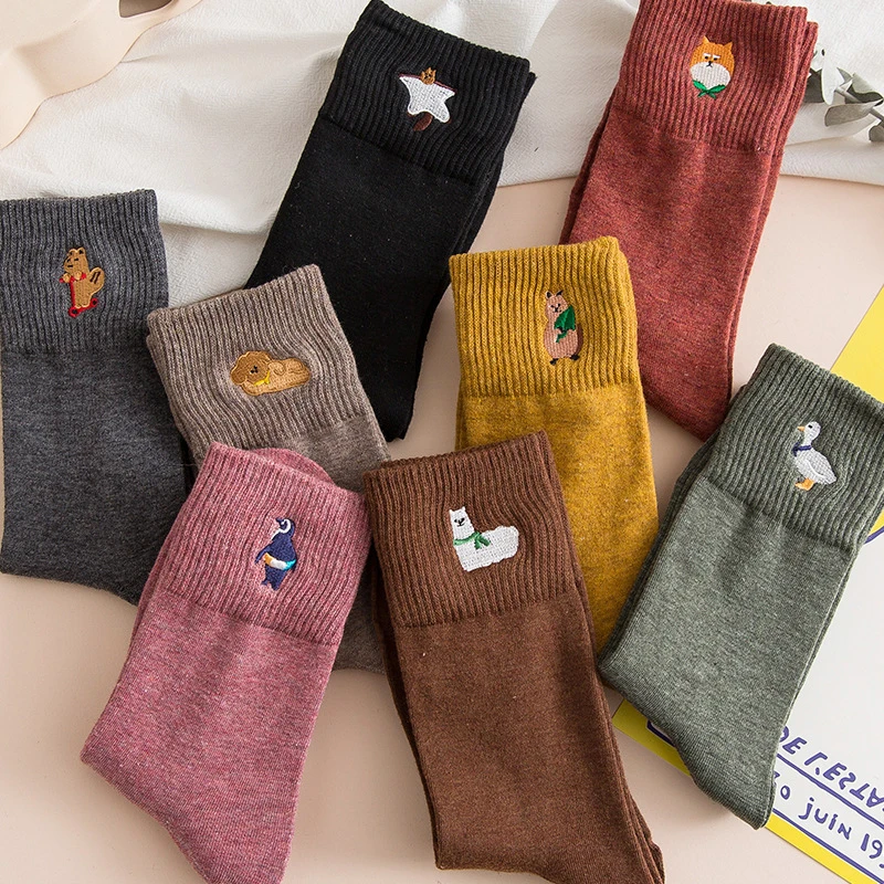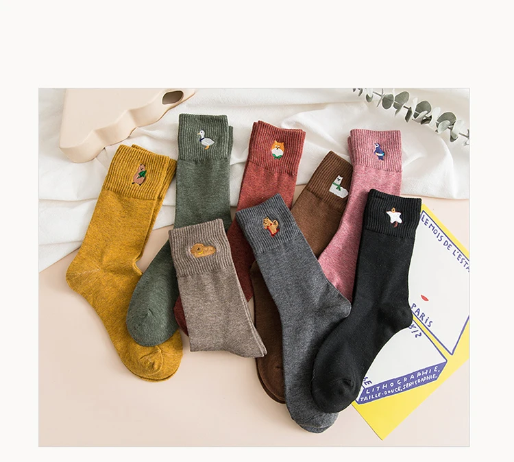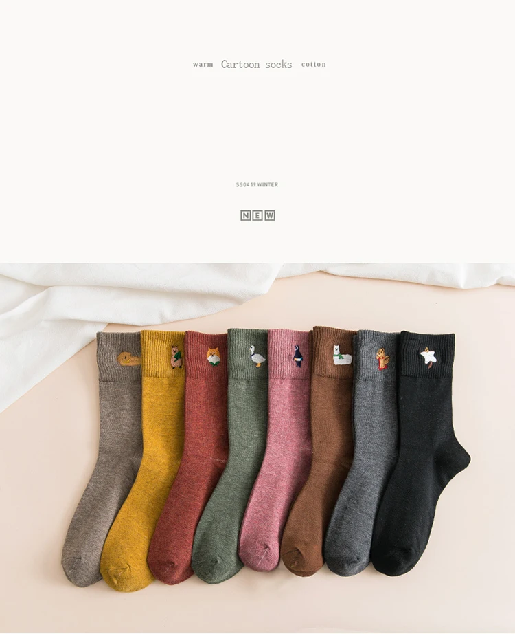 Носки с мультяшным принтом животных, собаки, пингвина, кавайные модные носки в стиле Харадзюку, женские забавные носки, милые дизайнерские носки