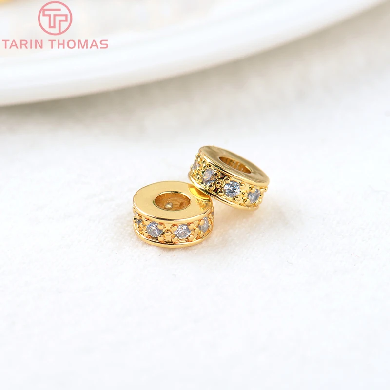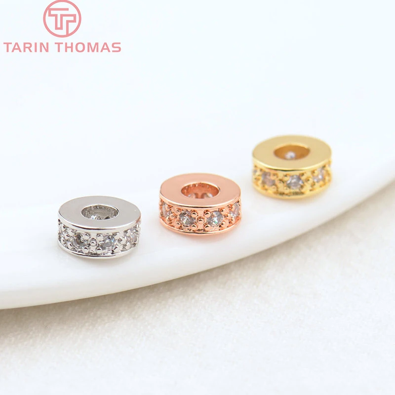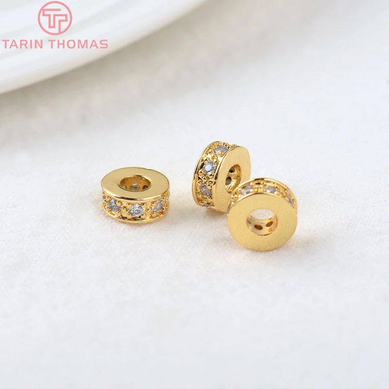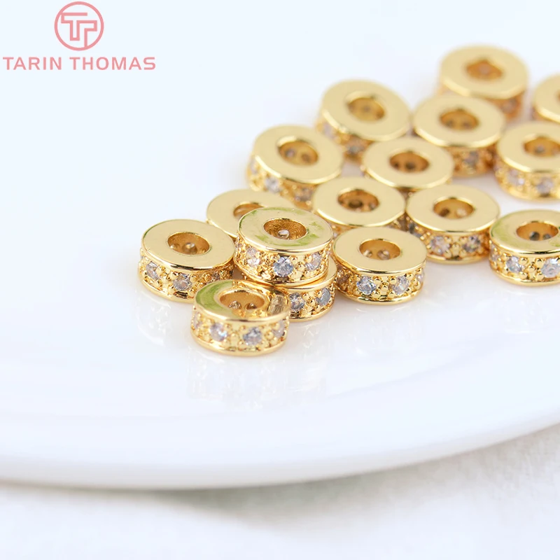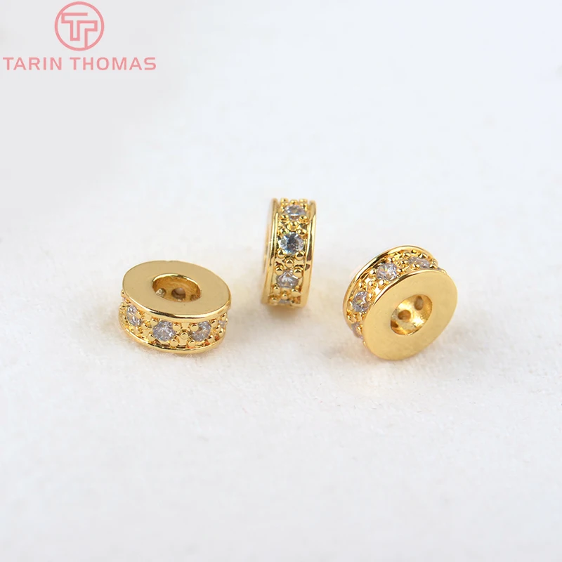 Латунные круглые бусины с цирконом, отверстие 3 мм, 24 К, 10 шт., фурнитура для изготовления ювелирных изделий, 7 х3 мм