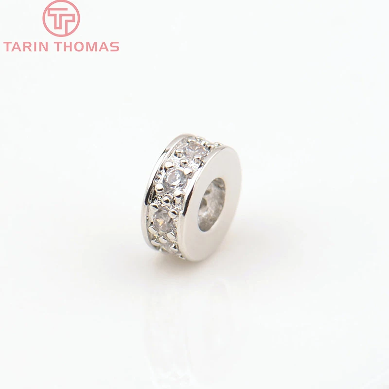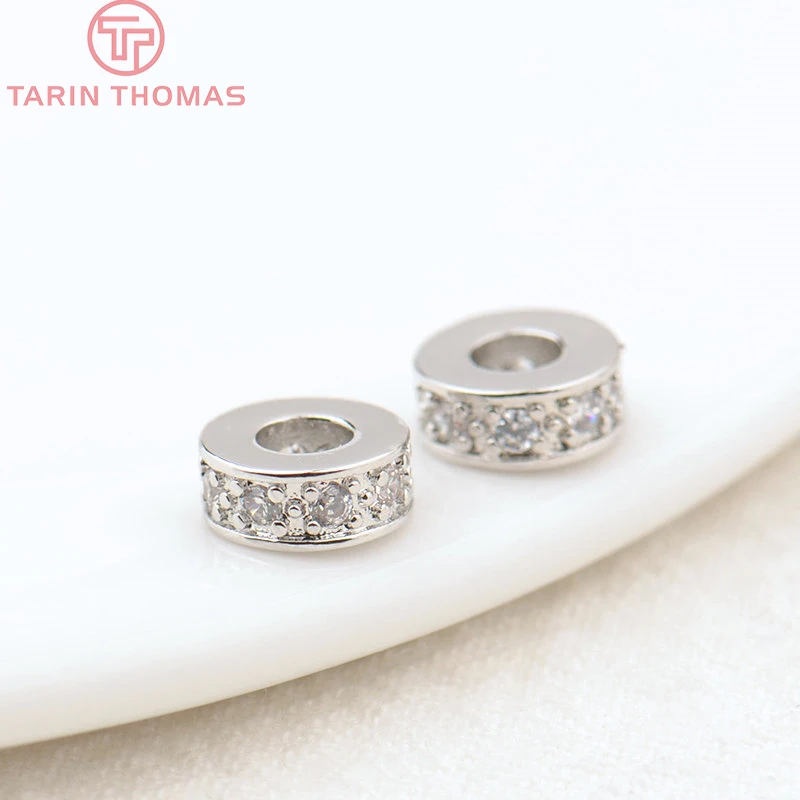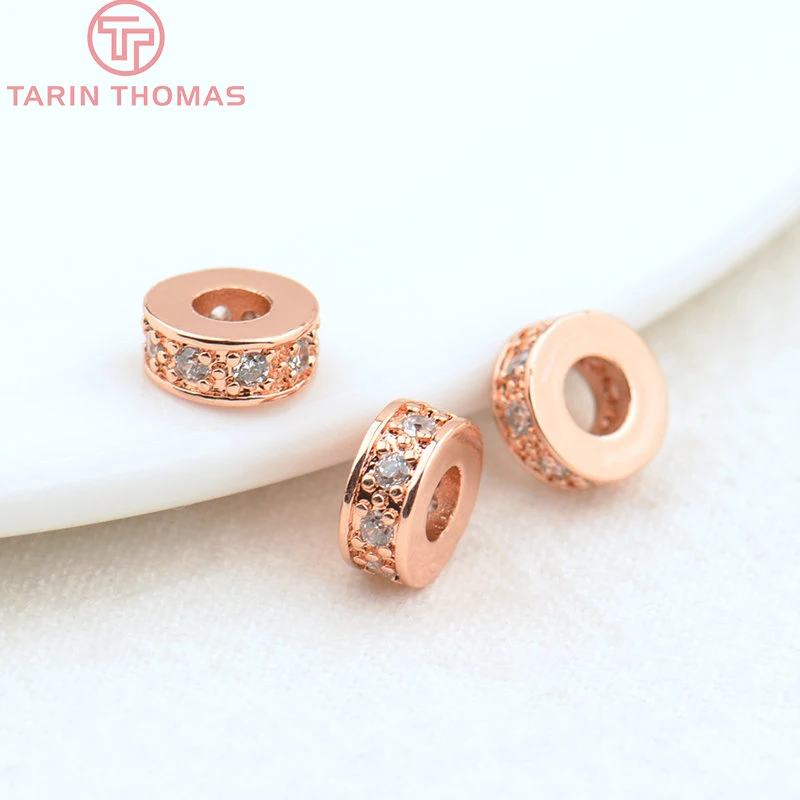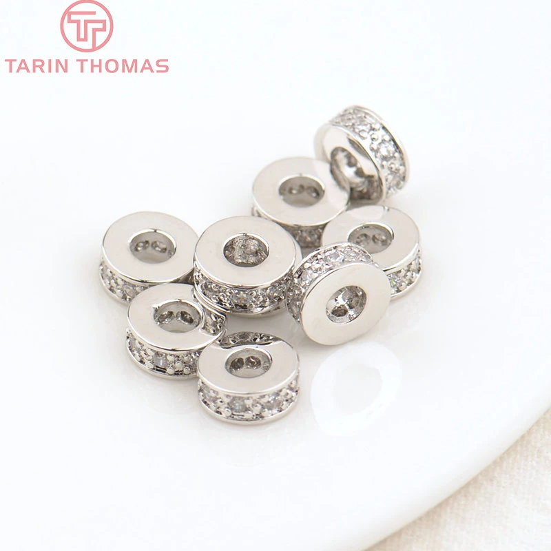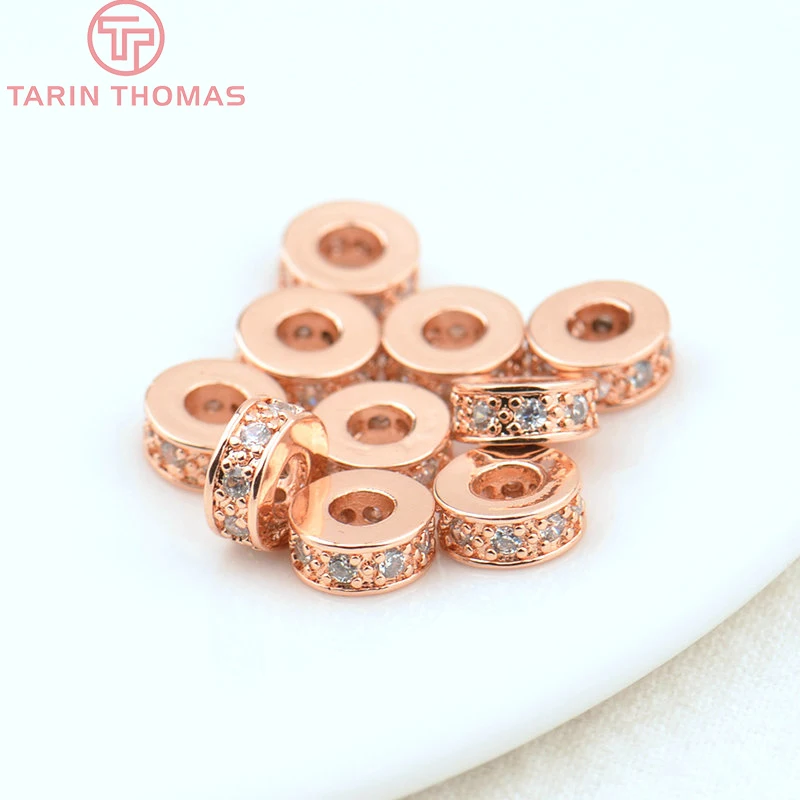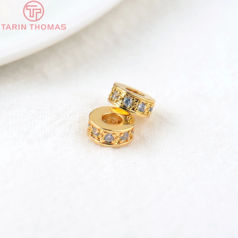 Латунные круглые бусины с цирконом, отверстие 3 мм, 24 К, 10 шт., фурнитура для изготовления ювелирных изделий, 7 х3 мм