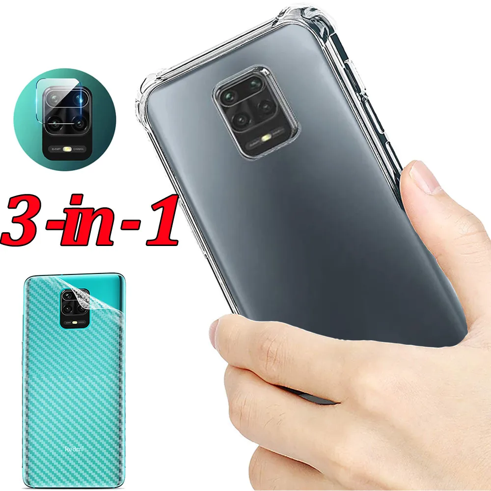 Силиконовый чехол для телефона с воздушной подушкой для Redmi Note 9 Pro, прозрачный чехол + задняя пленка + мягкие линзы для камеры Силиконовый чехол для телефона с воздушной подушкой для Redmi Note 9, прозрачный чехол + задняя пленка + мягкие линзы для камеры Силиконовый чехол для телефона с воздушной подушкой для Redmi Note 9S, прозрачный чехол + задняя пленка + Мягкий объектив для камеры