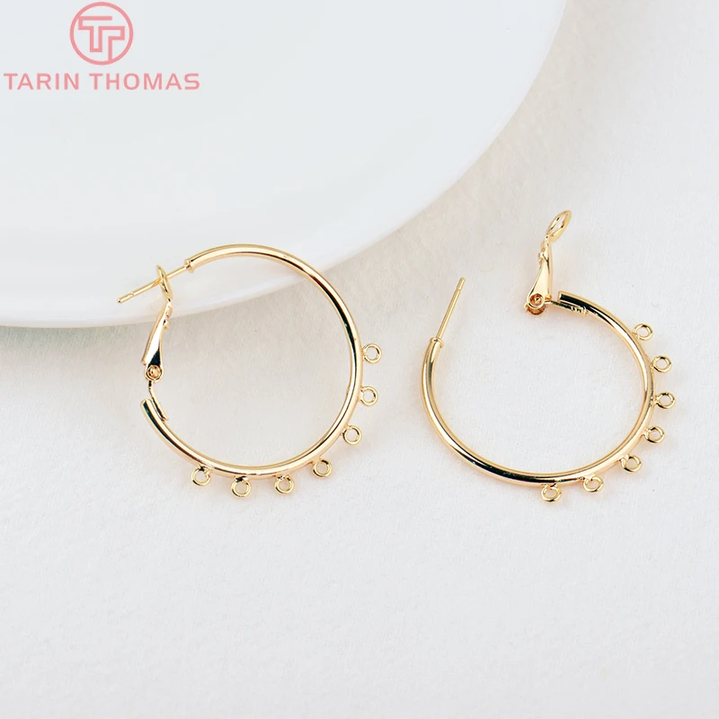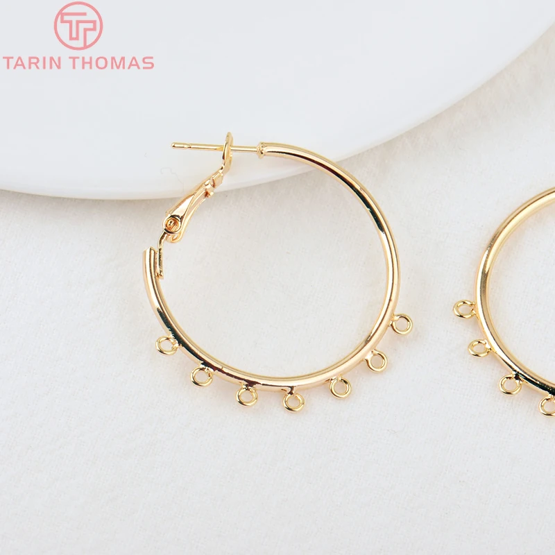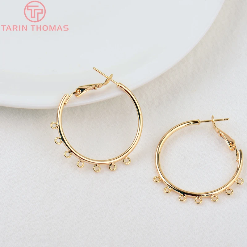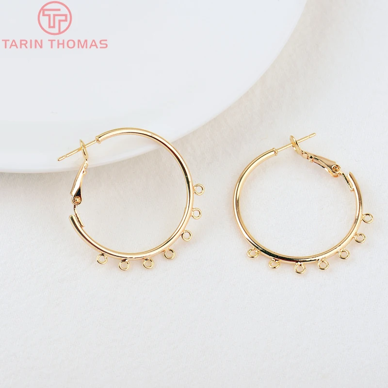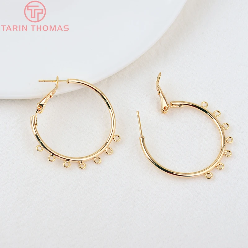 Латунные серьги-кольца для сережек, 4 шт., 30 мм, 24 к, золотого цвета, фурнитура высокого качества для изготовления ювелирных изделий, аксессуары, (2603)