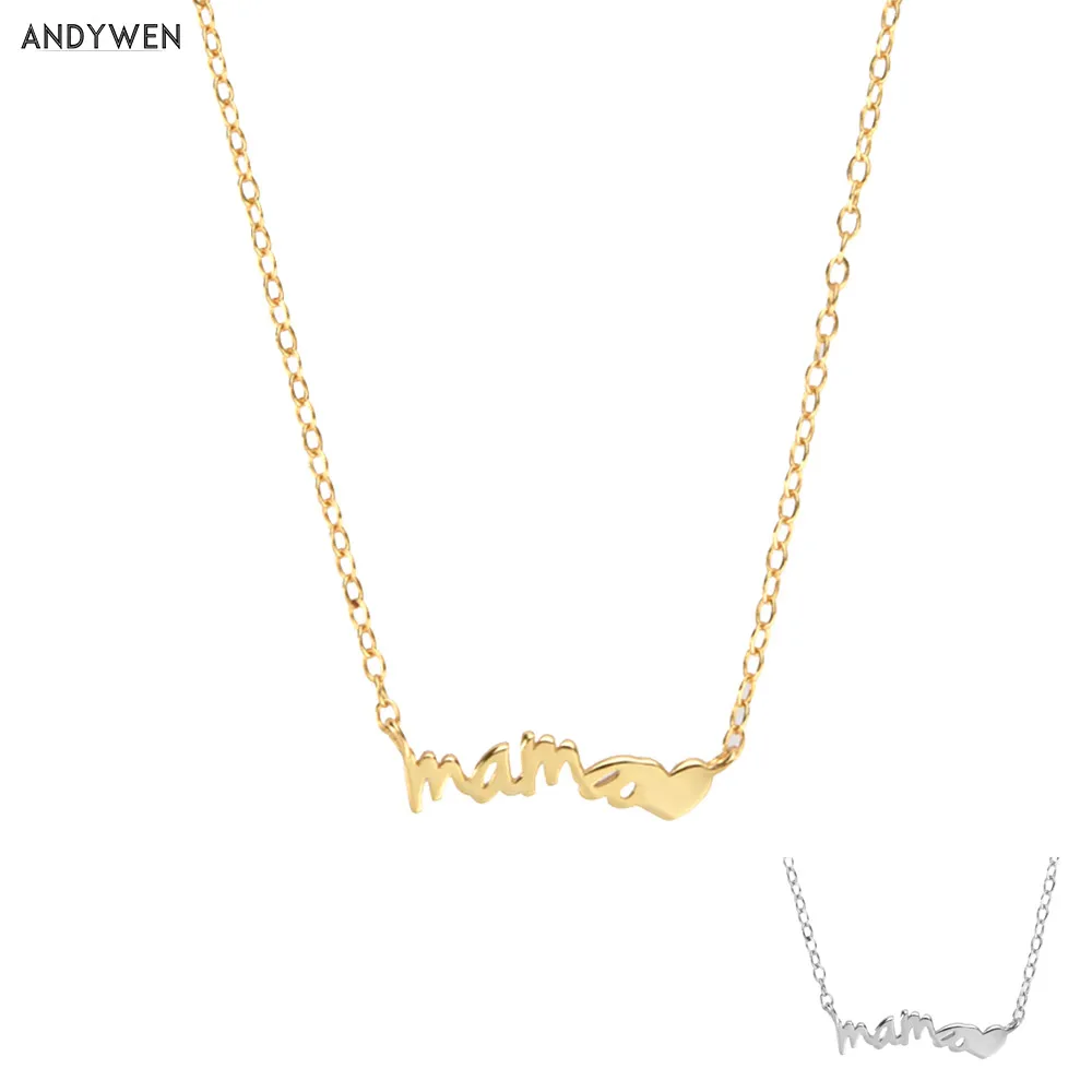 Женское ожерелье с подвеской мама ANDYWEN, длинная цепочка из стерлингового серебра 925 пробы, модная простая бижутерия в стиле рокпанк, хороший подарок