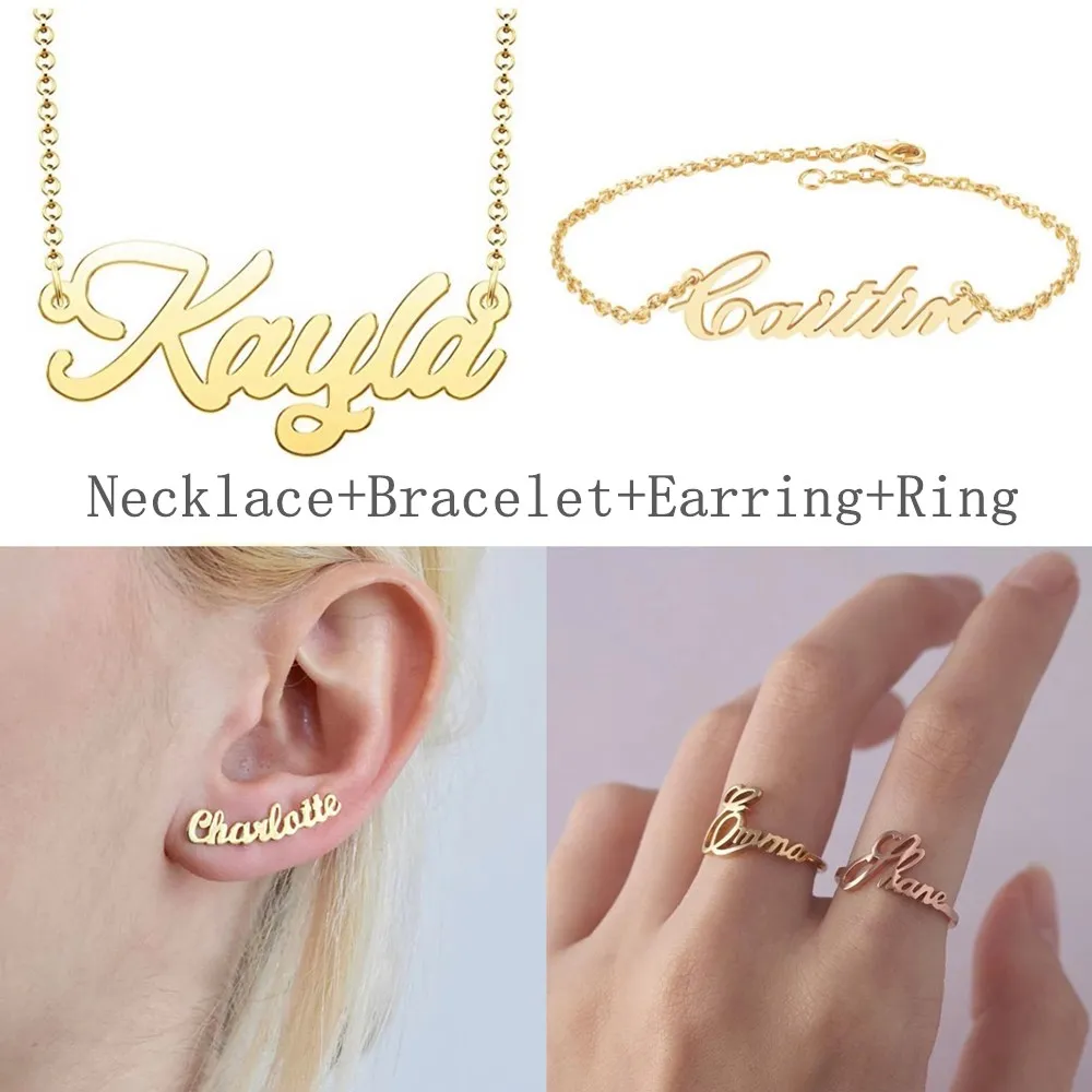 Комплект ювелирных изделий AurolaCo, колье с именем на заказ, чокер из нержавеющей стали под золото, ожерелье для женщин, лучшие подарки