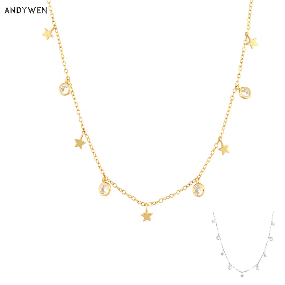 Ожерелье-чокер ANDYWEN из стерлингового серебра 925 пробы с подвеской в виде Золотой Звезды из циркония Длинная цепочка Ювелирные изделия 2020 крошечные Драгоценности свадебный подарок