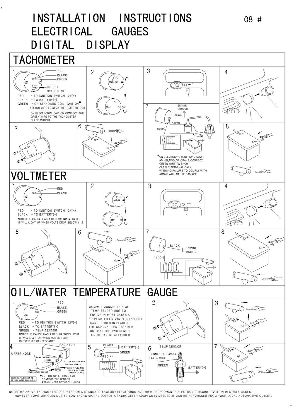 2 дюйма, 52 мм, 12 В, автоматический измеритель, синий цифровой дисплей, повышение температуры воды, температуры масла, давление масла, напряжение, тахометр, обороты и Калибр