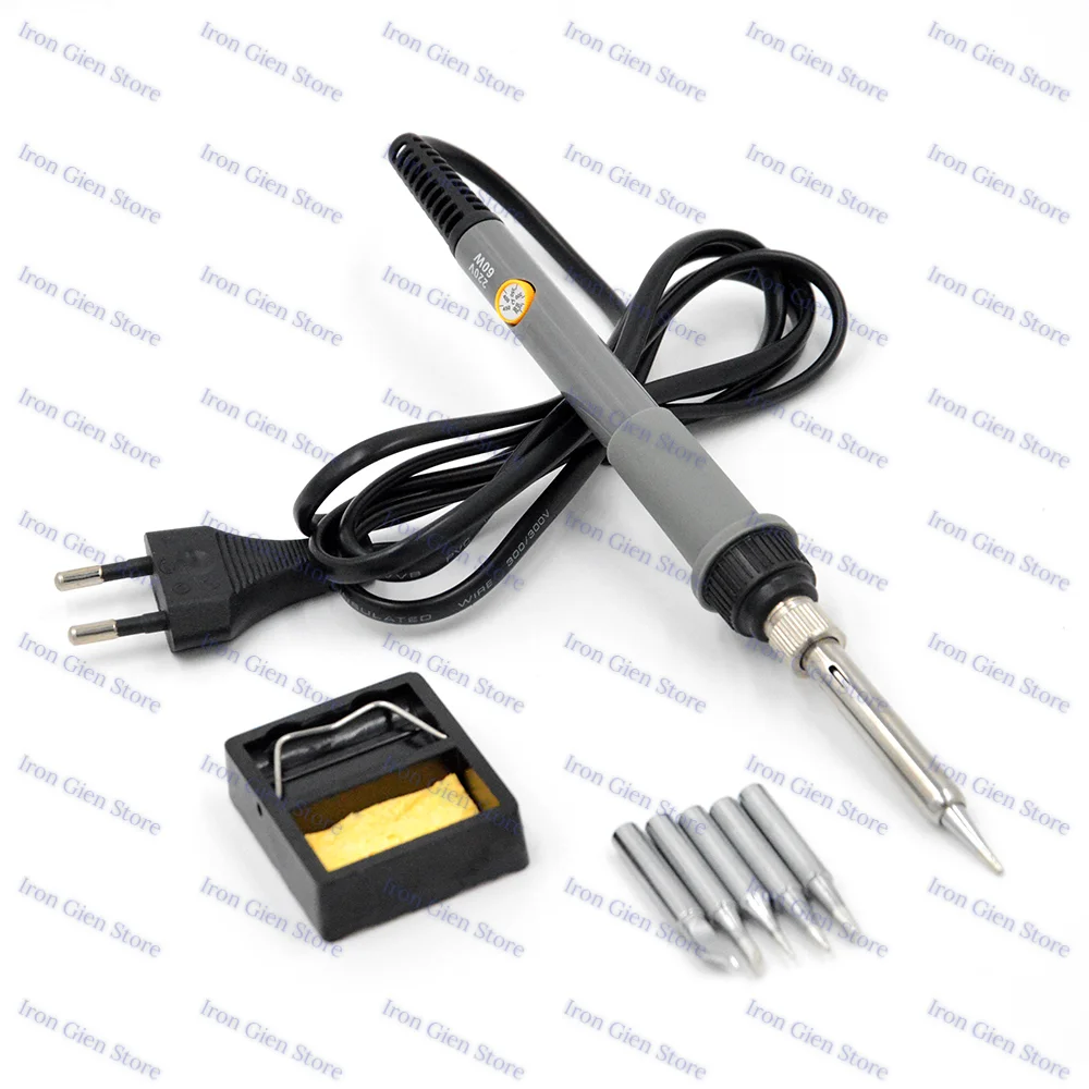 Электрический паяльник 220 в 60 Вт, набор для ремонта сварочного пистолета с вилкой европейского стандарта, регулируемая температура с подставкой, 5 наконечников для припоя