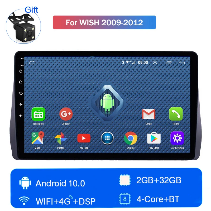 Android 10 четырехъядерный процессор ПЗУ 32 Гб радио плеер 32EQ dsp для Toyota WISH 2009 2010 2011 2012 реверсивное изображение Автомобильный GPS навигатор