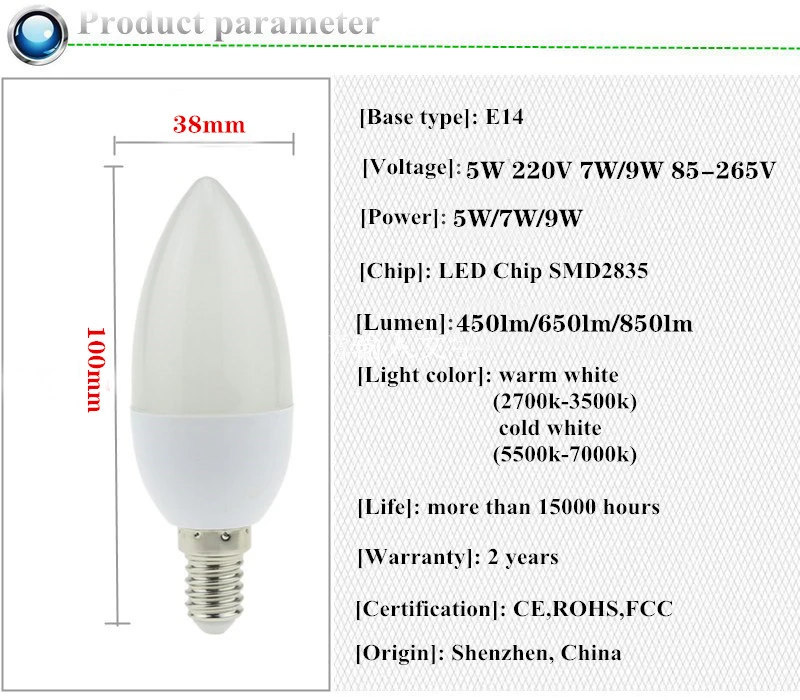 Страна: ES Emitting Color: Cold White Wattage: E14 AC220V 9W Доставка: Standard Shipping 07.06.2021
