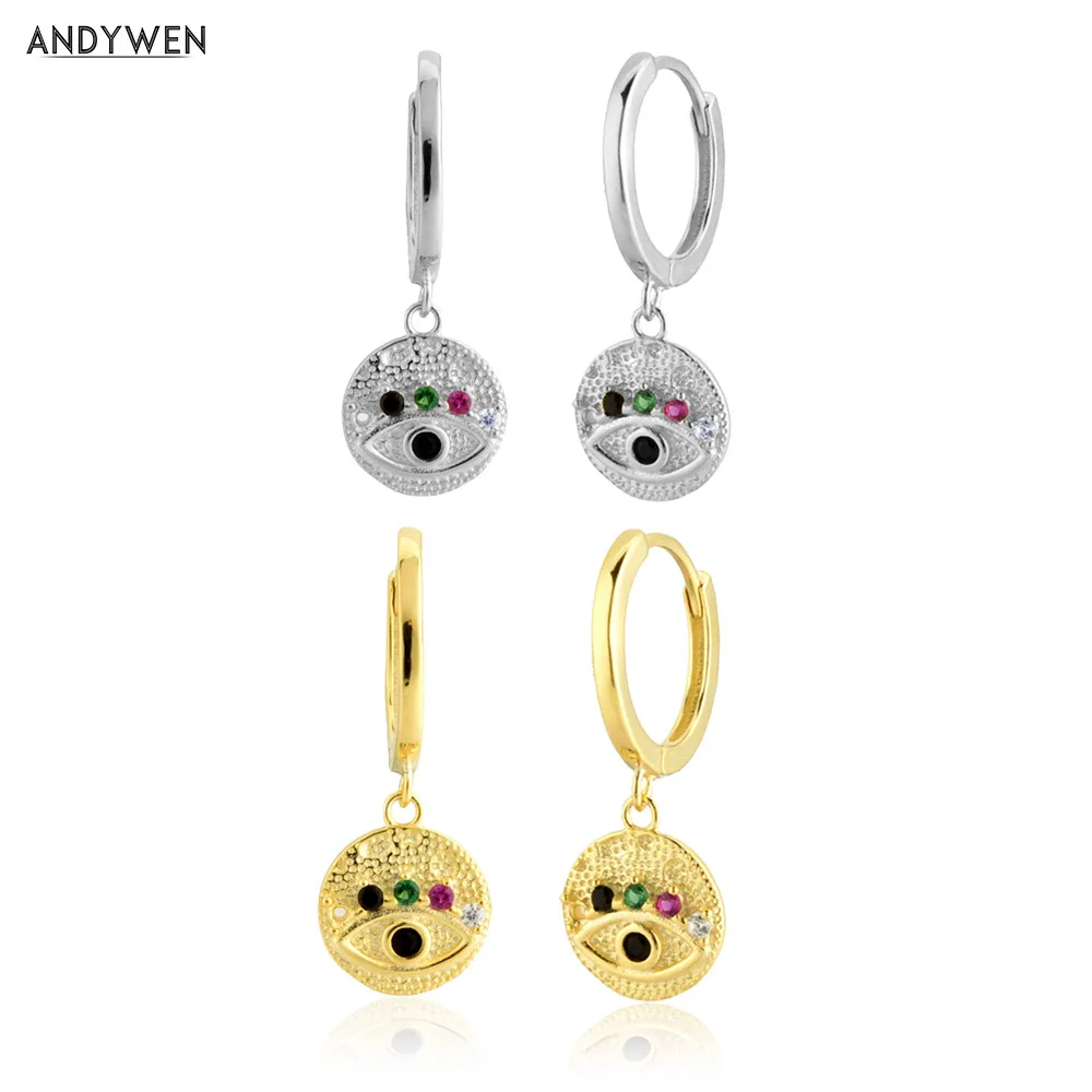 Серьги-подвески ANDYWEN из стерлингового серебра 925 пробы с золотистыми кристаллами